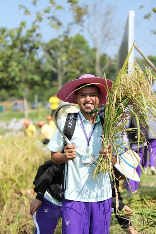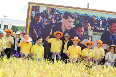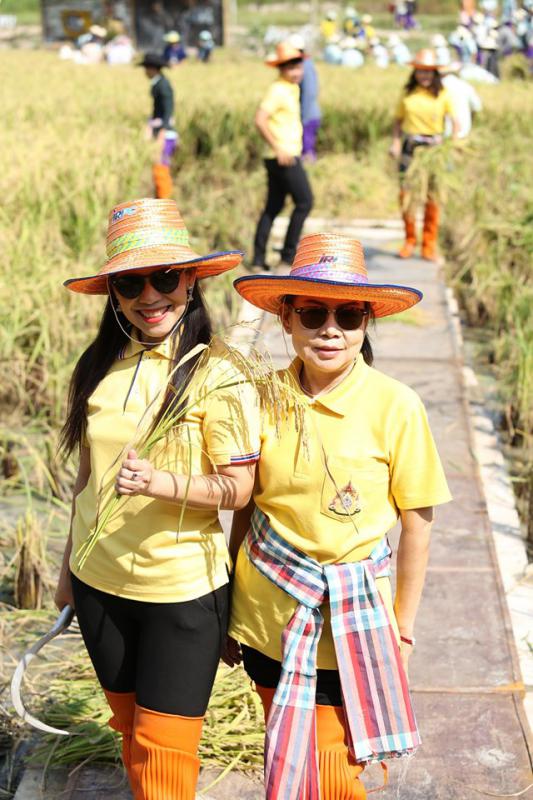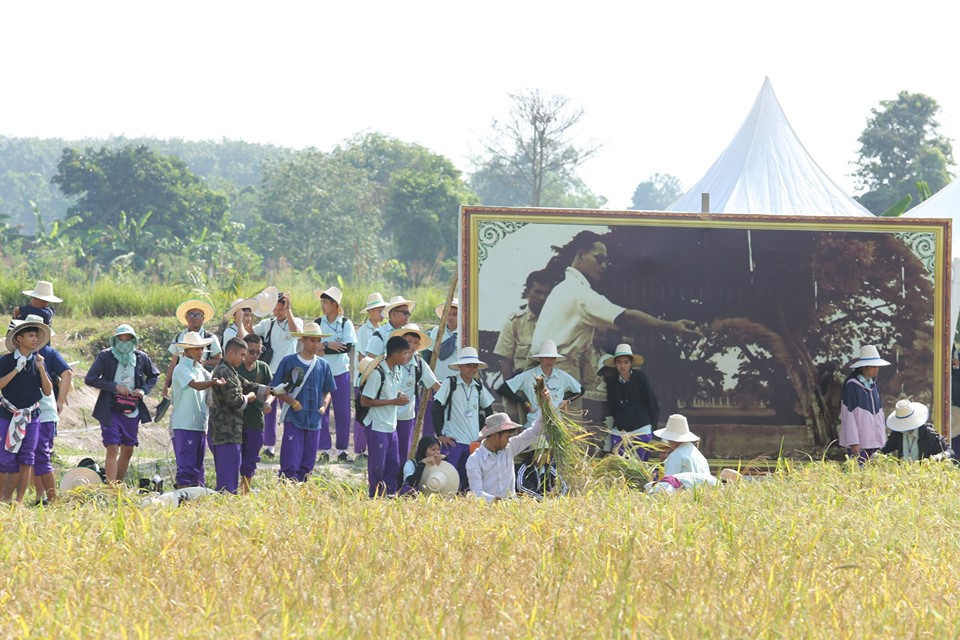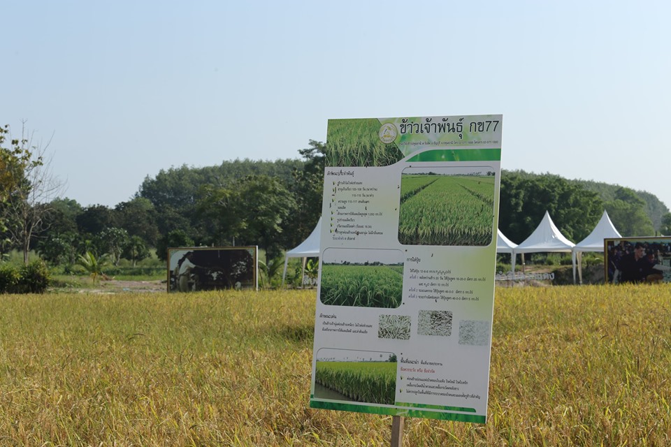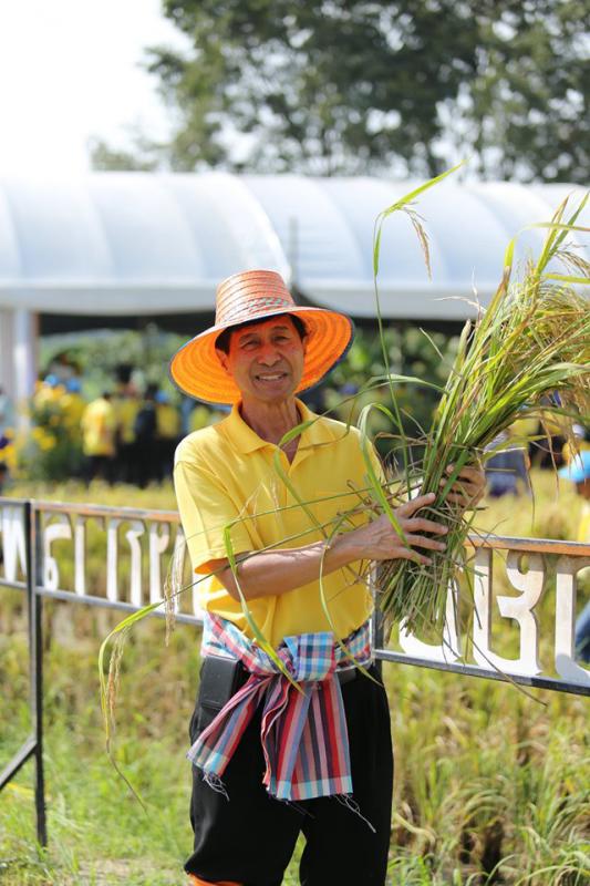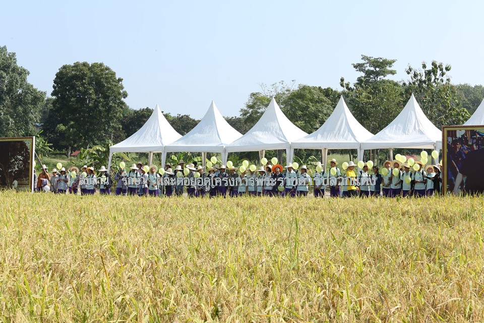 ภายในพิธี ท่านผู้ว่าราชการจังหวัดระยอง ได้เปิดกรวยถวายราชสักการะและร่วมปล่อยผ้าแพรเทิดพระเกียรติ เนื่องในโอกาสร่วมลงมือเกี่ยวข้าวในแปลงนาสาธิต ทั้งนี้ ข้าวที่ได้เก็บเกี่ยวเป็นสายพันธุ์ กข77 ที่มีลักษณะเด่นคือ เป็นข้าวเจ้านุ่มค่อนข้างเหนียว ไม่ไวต่อช่วงแสง มีเสถียรภาพการให้ผลผลิตดี ลำต้นแข็งแรง อายุการเก็บเกี่ยว 110 – 115 วัน (นาปักดำ) จากการสอบถามผู้ที่มาร่วมงาน มีความปลื้มปิติและยินดีเป็นอย่างยิ่ง ที่ได้มาร่วมเป็นส่วนหนึ่งในงานสำคัญในครั้งนี้