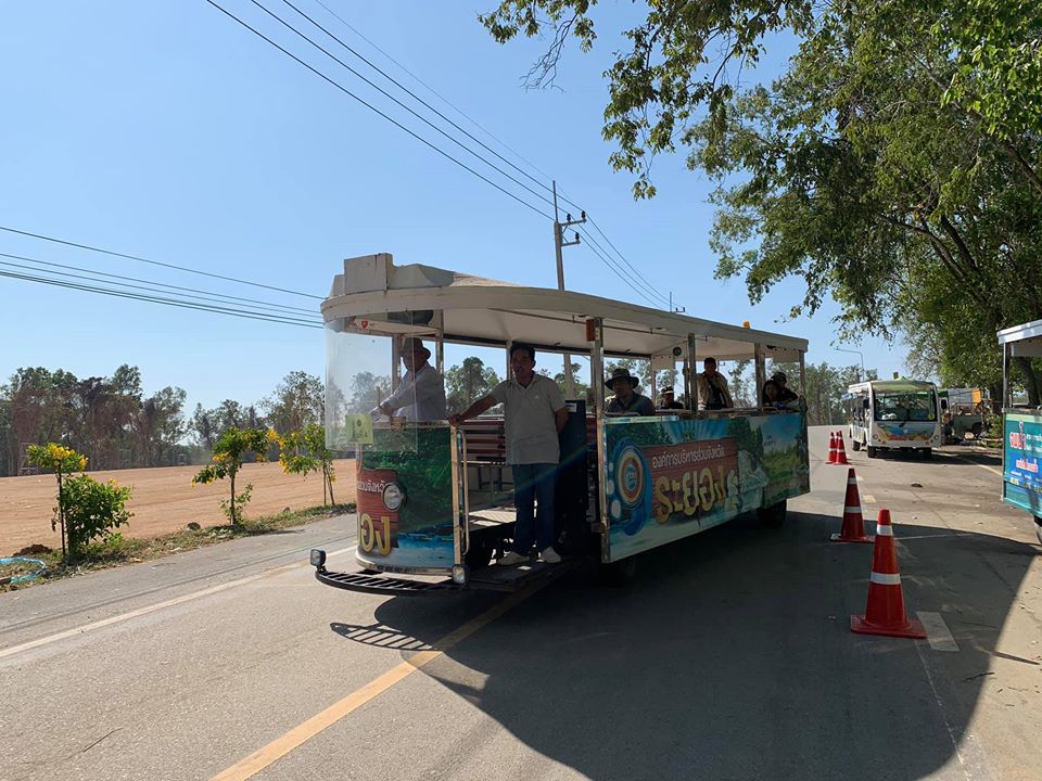 บรรยากาศยามเช้า ณ อ่างเก็บน้ำดอกกราย ท่านใดที่สนใจจะเข้ามาชมทุ่งทานตะวันและหอเฉลิมพระเกียรติ ทางอบจ.ระยองได้มีรถรางไว้บริการตั้งแต่วันนี้ ถึงวันที่ 8 ธ.ค. 2562 ท่านสามารถจอดรถได้ที่จุดจอดรถ และขึ้นรถรางนั่งชมบรรยากาศรอบอ่างเก็บน้ำได้เลย