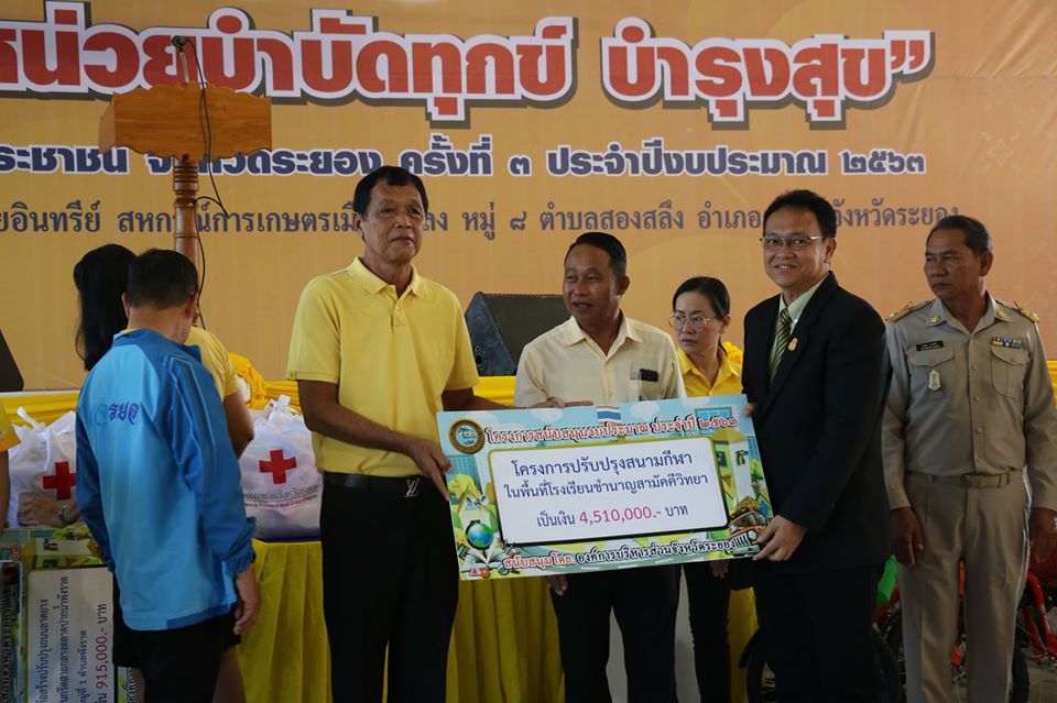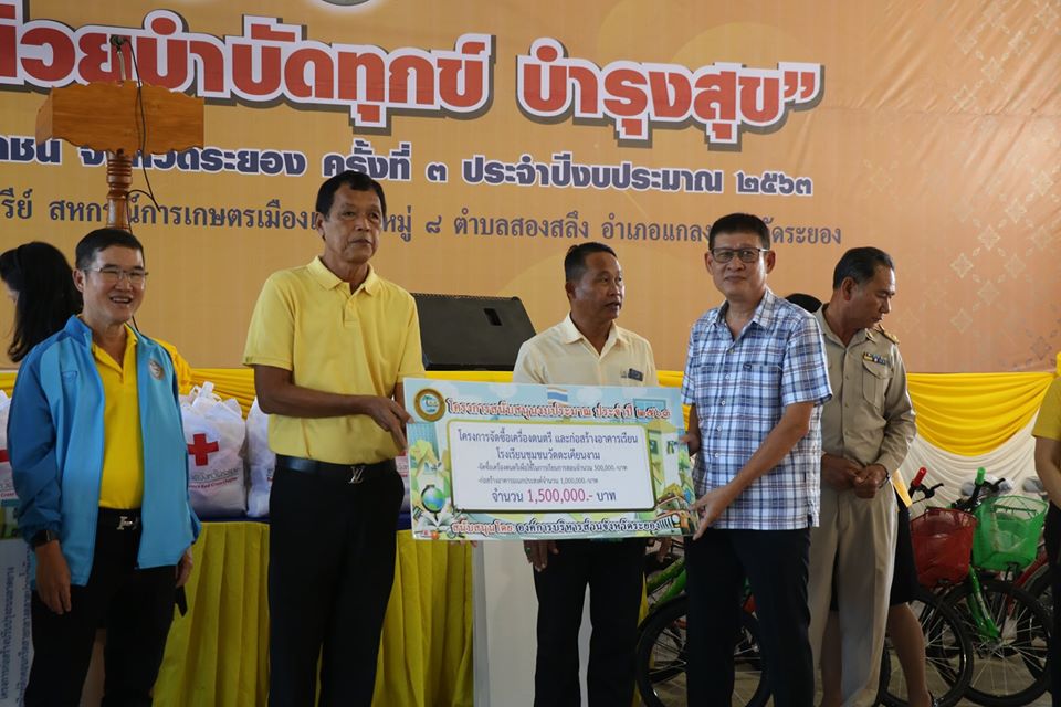 โดยมีนายยุทธพล องอาจอิทธิชัย รองผู้ว่าราชการจังหวัดระยอง เป็นประธานเปิดโครงการ พร้อมด้วย นายปิยะ ปิตุเตชะ นายกองค์การบริหารส่วนจังหวัดระยอง ,สมาชิกสภาองค์การบริหารส่วนจังหวัดระยอง ,หัวหน้าส่วนราชการ ,องค์กรปกครองส่วนท้องถิ่น และหน่วยงานต่างๆในจังหวัดระยอง เข้าร่วมโครงการ ณ โรงงานผลิตปุ๋ยอินทรีย์ สหกรณ์การเกษตรเมืองแกลง หมู่ที่ 8 ตำบลสองสลึง อำเภอแกลง จังหวัดระยอง โดยกิจกรรมภายในงานมีการประชาสัมพันธ์การรับชำระภาษีบำรุง อบจ./น้ำมัน/ก๊าซปิโตรเลียม , คลินิกเซ็นเตอร์(รับฟังปัญหาของประชาชน) กิจกรรมเล่นเกมส์ตอบปัญหา แจกของรางวัล, บริการตรวจสุขภาพ คัดกรองความดัน เบาหวาน, ให้ความรู้และคำแนะนำเรื่องยาเสพติด, จำหน่ายสินค้า OTOP, ตรวจวัดสายตา, แจกแว่นสายตายาวฟรี, แจกปุ๋ยมูลไส้เดือน, จำหน่ายไข่ไก่ราคาถูก, แจกพันธุ์ไม้, แจกพันธุ์ปลา, บริการตรวจสุขภาพของหน่วยแพทย์เคลื่อนที่ พอสว นอกจากนี้ยังมีกิจกรรมจากหน่วยงานราชการมาให้บริการมากมาย ซึ่งประชาชนในพื้นที่และใกล้เคียงต่างให้ความสนใจเข้ามาร่วมงานเป็นจำนวนมาก