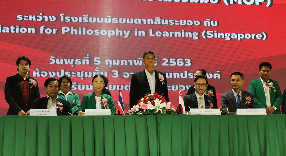พิธีลงนามบันทึกข้อตกลงความร่วมมือ (MOP) ระหว่าง โรงเรียนมัธยมตากสินระยอง กับ Association for Philosophy in Learning (Singapore)