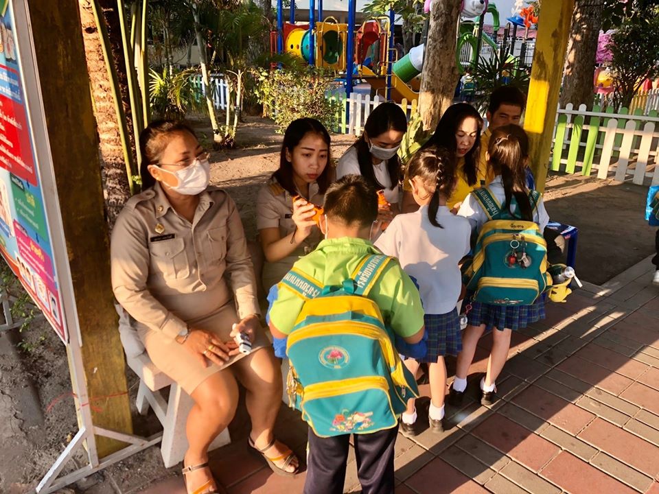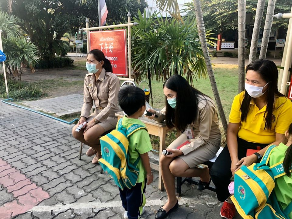 วันที่ 9 มีนาคม 2563 กลุ่มงานพยาบาล สำนักปลัดฯ ได้ดำเนินการคัดกรองเด็กป่วยก่อนเข้าอาคารเรียน สังเกตอาการผิดปกติของเด็กนักเรียนที่เจ็บป่วยระยะเบื้องต้น เพื่อป้องกันและควบคุมโรคติดต่อภายในโรงเรียนสังกัดองค์การบริหารส่วนจังหวัดระยอง สำหรับขั้นตอนการดำเนินงานจะมี ตรวจวัดอุณภูมิ ตรวจบริเวณช่องปากและมือ และกดเจลล้างมือ ซึ่งการตรวจคัดกรองครั้งนี้ไม่พบเด็กป่วย