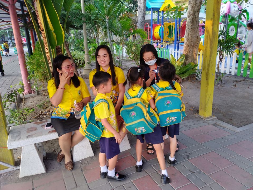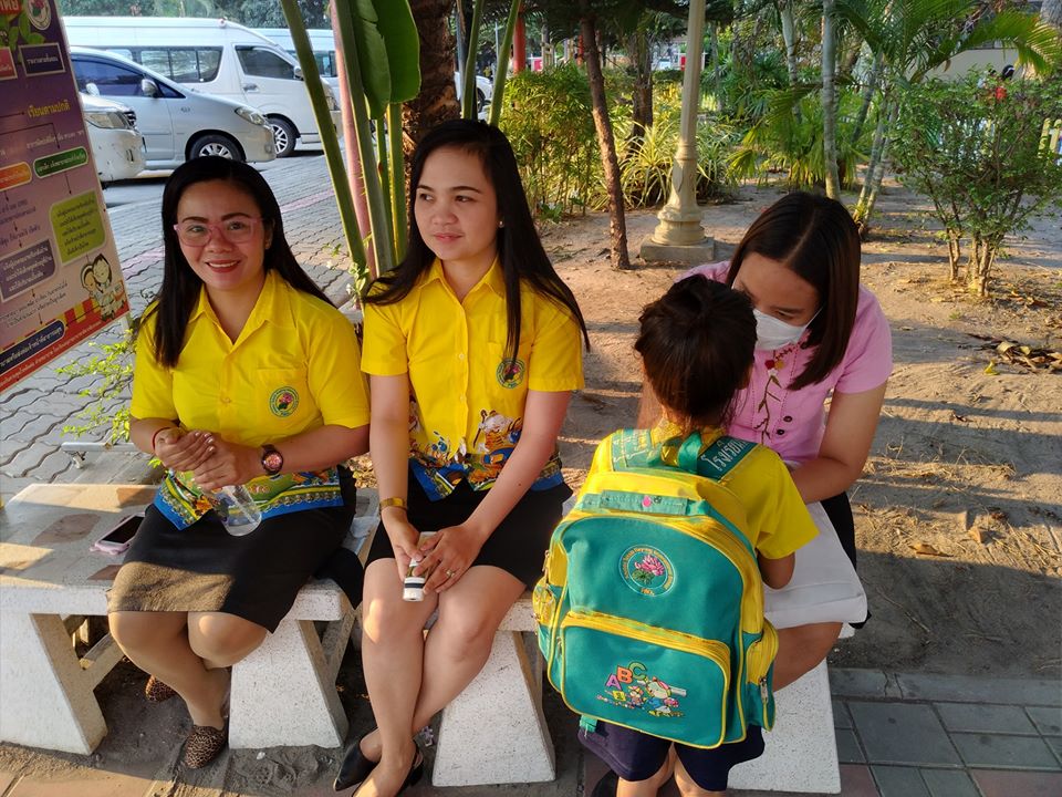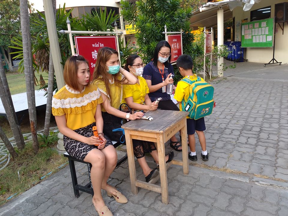 การคัดกรองเด็กป่วยก่อนเข้าอาคารเรียนโรงเรียนสังกัดองค์การบริหารส่วนจังหวัดระยอง