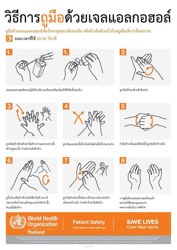 - ควรล้างมือให้สม่ำเสมอด้วยสบู่ หรือแอลกอฮอล์เจลอย่างน้อย 20 วินาที