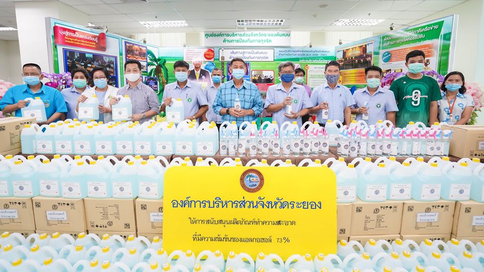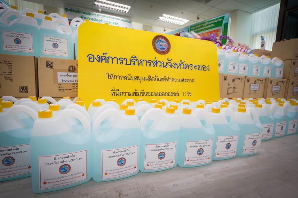 อบจ.ระยอง มอบแอลกอฮอล์ 73 % ให้กับหน่วยงานสาธารณสุขในจังหวัดระยอง