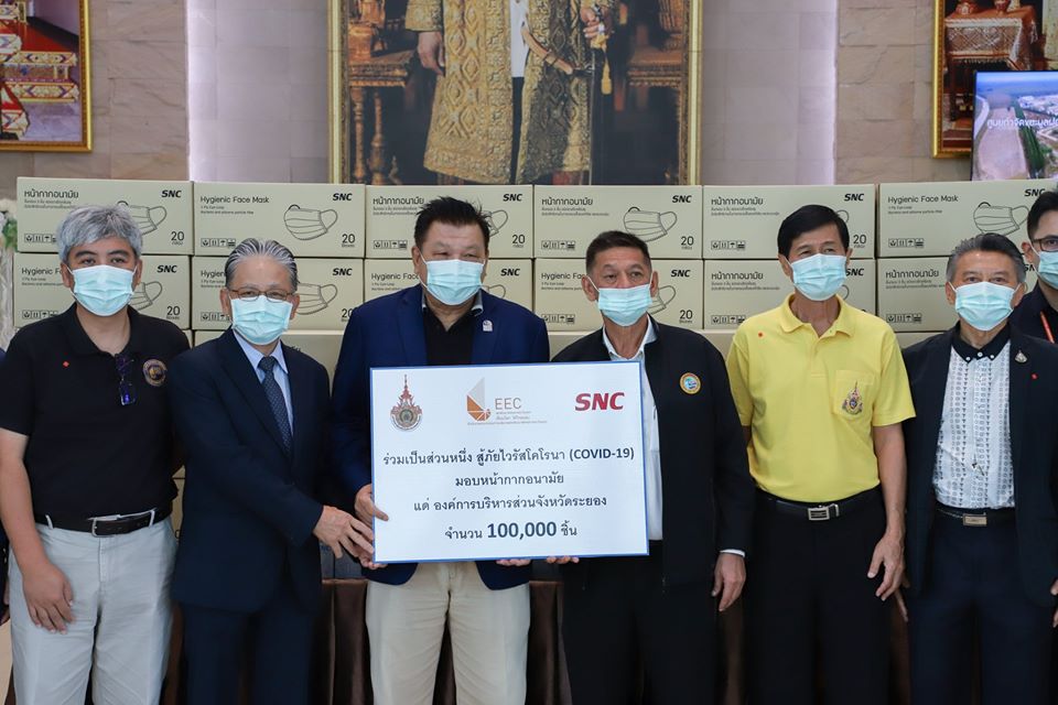 องค์การบริหารส่วนจังหวัดระยอง รับมอบหน้ากากอนามัยจากบริษัท เอส เอ็น ซี ฟอร์เมอร์ จำกัด (มหาชน)