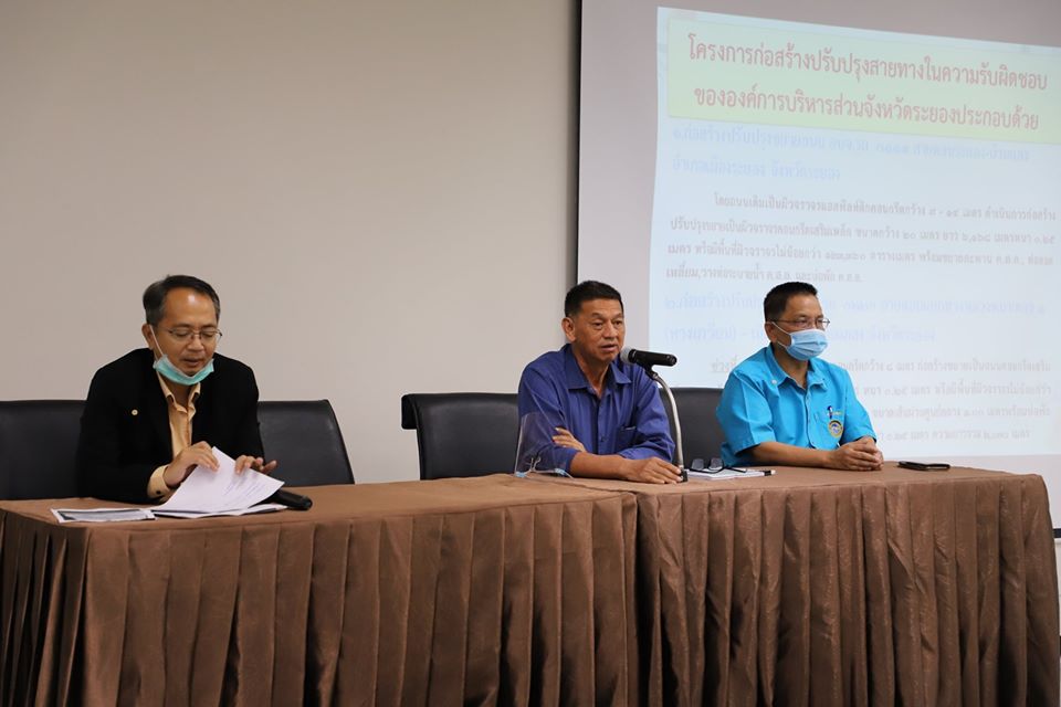 วันที่ 26 มิถุนายน 2563 เวลา 14.00 น. นายปิยะ ปิตุเตชะ นายกองค์การบริหารส่วนจังหวัดระยอง พร้อมด้วยนายสุรินทร์ แสงทอง รองปลัดองค์การบริหารส่วนจังหวัดระยอง(1) และนายสมศักดิ์ เกตุสาคร รองปลัดองค์การบริหารส่วนจังหวัดระยอง(2) ร่วมกันชี้แจงประเด็น โครงการก่อสร้างปรับปรุงสายทางในความรับผิดชอบ ขององค์การบริหารส่วนจังหวัด ขยายถนนสายตอนระยอง - บ้านแลง,สายตอนแยกทางหลวงหมายเลข 3 – เนินอู่ทอง อำเภอแลง และสายชำฆ้อ – เขาช่องลม แก่ผู้นำชุมชนและท้องถิ่นในเขตพื้นที่ดังกล่าว ว่ามีความจำเป็นอย่างยิ่ง ที่จะแก้ไขปัญหาความเดือดร้อนของประชาชน ผู้ใช้รถใช้ถนนในจังหวัดระยอง ซึ่งในปัจจุบันจังหวัดระยอง มีอัตราการใช้รถบนท้องถนน และสถิติการเสียชีวิตจากอุบัติเหตุบนท้องถนน มากเป็นอันดับต้นๆ ของประเทศ โดยโครงการดังกล่าวนั้นเป็นโครงการที่เป็นประโยชน์โดยตรงต่อประชาชน และได้รับเสียงเรียกร้องจากชุมชนที่ได้รับผลกระทบจากปัญหาผิวทางจราจร จึงจำเป็นต้องรีบแก้ไขปัญหาความเดือดร้อนของประชาชน โดยเร็วที่สุด ซึ่งองค์การบริหารส่วนจังหวัดระยองมีความประสงค์ที่จะดำเนินการตามอำนาจหน้าที่ขององค์การบริหารส่วนจังหวัดระยอง เพื่อรักษาผลประโยชน์ให้กับประชาชนชาวจังหวัดระยอง และผู้สัญจรให้มากที่สุด