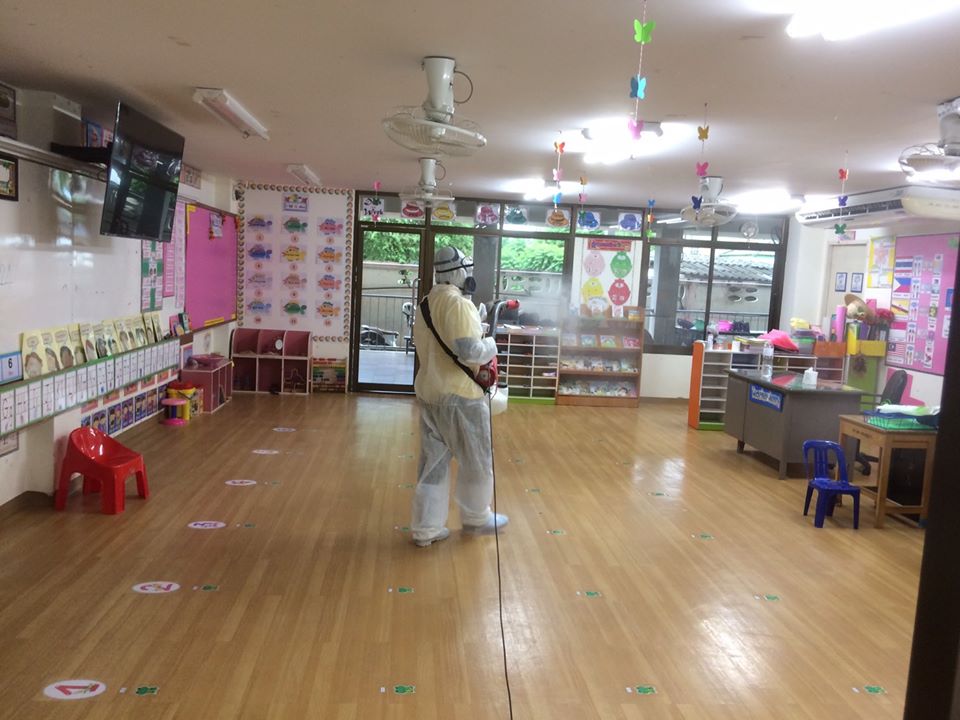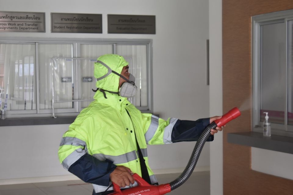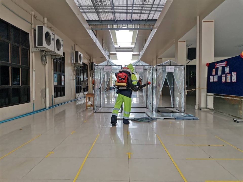 องค์การบริหารส่วนจังหวัดระยอง จัดเจ้าหน้าที่ลงพื้นที่โรงเรียนในสังกัดอบจ.ระยองทําการพ่นฆ่าเชื้อภายในโรงเรียนและภายนอกโรงเรียน