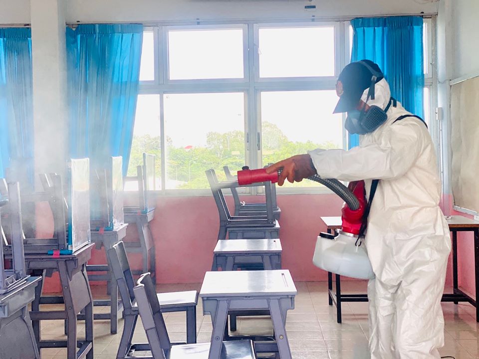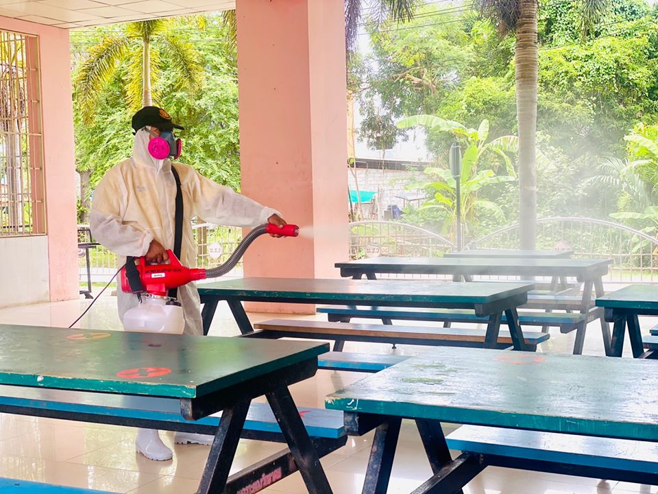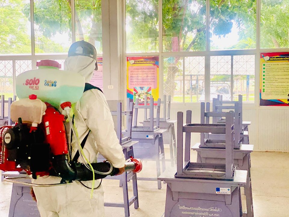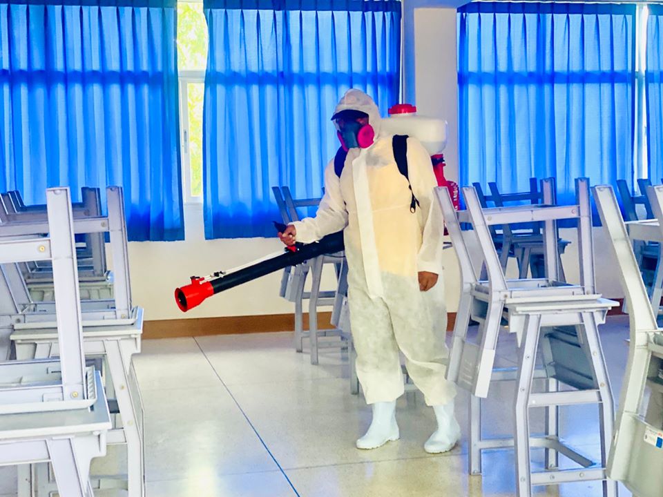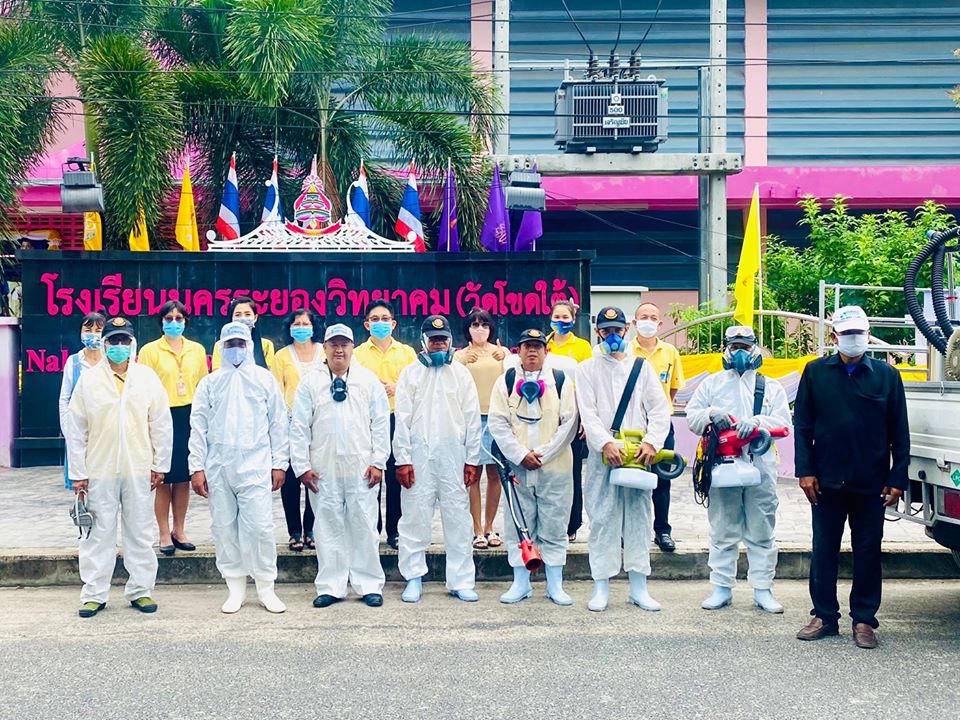 องค์การบริหารส่วนจังหวัดระยองนับสนุนเจ้าหน้าที่พร้อมอุปกรณ์ฉีดพ่นเชื้อโควิด-19 ให้กับโรงเรียนในสังกัดเทศบาลนครระยอง