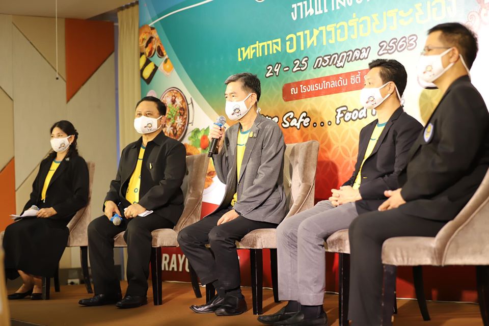วันที่ 22 กรกฎาคม 2563 เวลา 16.00 น. ณ ห้องแสงเพชร 1 โรงแรมโกลเด้นซิตี้ระยอง นายกิตติ เกียรติ์มนตรี รองนายกองค์การบริหารส่วนจังหวัดระยอง (2) เข้าร่วมแถลงข่าวการจัดงานเทศกาลอาหารอร่อย ระยอง โดยมี นายสุรศักดิ์ เจริญศิริโชติ ผู้ว่าราชการจังหวัดระยอง นายพงษ์อนันต์ จันทร์ไพร ท่องเที่ยวและกีฬาจังหวัดระยอง นายพิธพร สมะลาภา รองประธานหอการค้าจังหวัดระยอง ซึ่งจะจัดขึ้นในวันที่ 24-25 กรกฎาคม 2563 ณ สนามกีฬากลางจังหวัดระยอง นายสุรศักดิ์ เจริญศิริโชติ ผู้ว่าราชการจังหวัดระยอง กล่าวว่า งานเทศกาลอาหารอร่อย ระยอง ดังกล่าวจัดขึ้นเพื่อช่วยเหลือผู้ประกอบการ SMEs ในจังหวัดระยองให้มาออกร้านของตนเองซึ่งแต่ละร้านจะเป็นร้านที่มีชื่อเสียงและเป็นที่รู้จัก โดยจะมีร้านต่างๆ มาออกร้านจำหน่ายอาหารกว่า 100 ร้านค้า