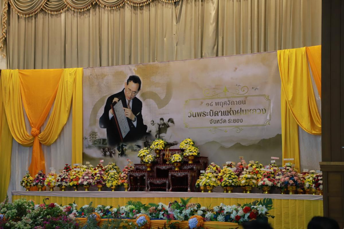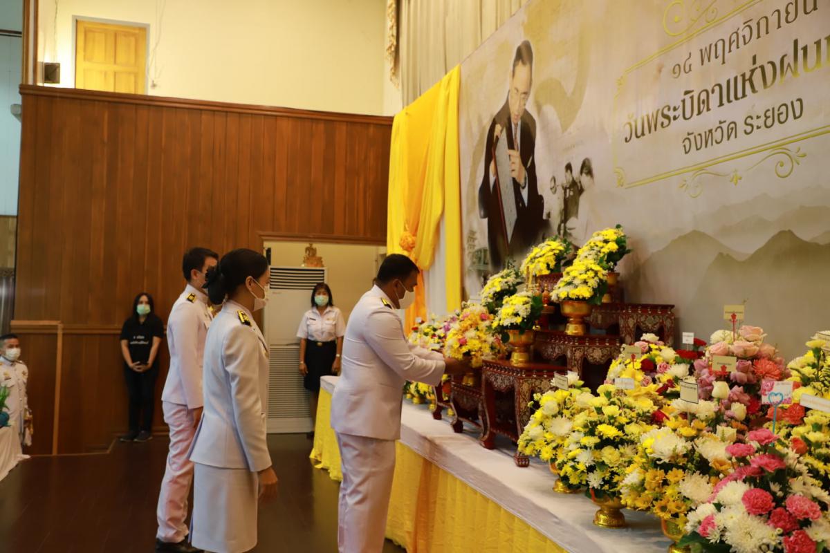 วันที่ 14 พฤศจิกายน 2563 เวลา 07.00 น. ข้าราชการและพนักงานจ้าง สังกัดองค์การบริหารส่วนจังหวัดระยอง เข้าร่วมพิธีวางพานพุ่มดอกไม้สด เพื่อถวายราชสักการะน้อมรำลึกในพระมหากรุณาธิคุณพระบาทสมเด็จพระบรมชนกาธิเบศร มหาภูมิพลอดุลยเดชมหาราชบรมนาถบพิตร เนื่องใน "วันพระบิดาแห่งฝนหลวง ประจำปี 2563" โดยมีนายชาญนะ เอี่ยมแสง ผู้ว่าราชการจังหวัดระยอง เป็นประธานในพิธี เข้าวางพานพุ่มดอกไม้สด และกล่าวรำลึกในพระมหากรุณาธิคุณหน้าพระบรมฉายาลักษณ์ ณ หอประชุมกันเกรา โรงเรียนมาบตาพุดพันพิทยาคาร อำเภอเมืองระยอง จังหวัดระยอง