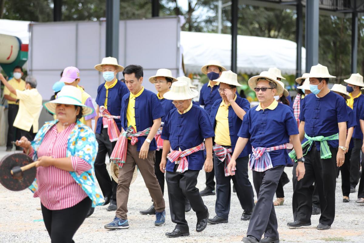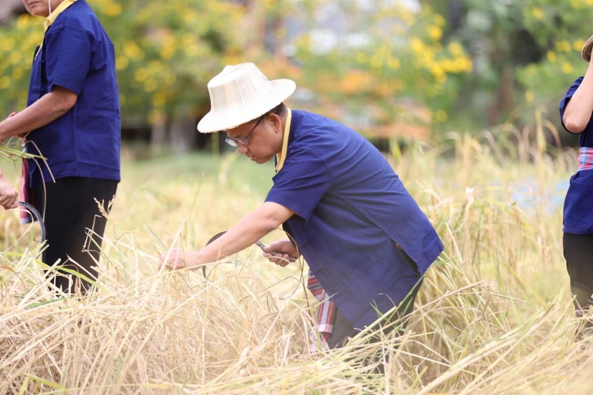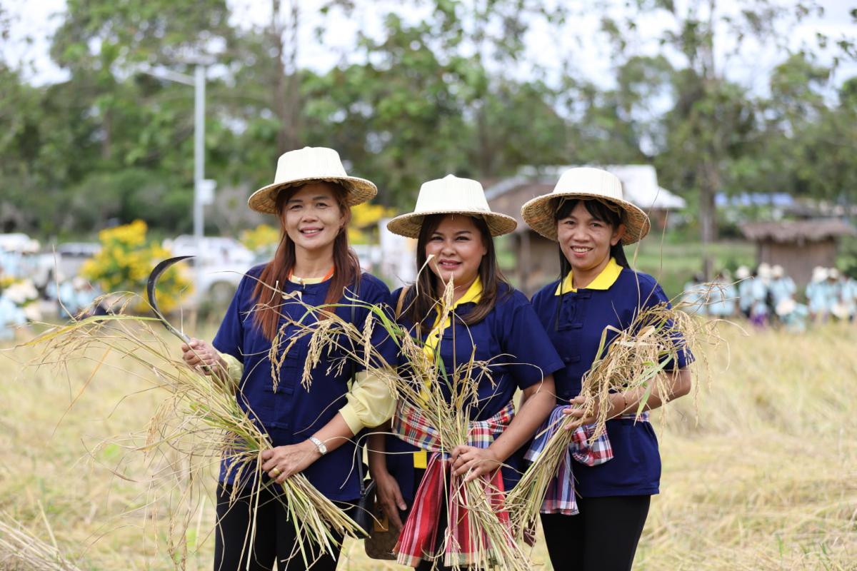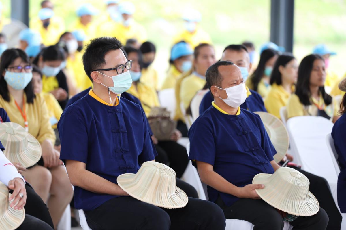 ภายในพิธี นายวุฒิศักดิ์ สิงหเดโช นายอำเภอปลวกแดง ได้เปิดกรวยถวายราชสักการะและร่วมปล่อยลูกโป่งเทิดพระเกียรติ เนื่องในโอกาสร่วมลงมือเกี่ยวข้าวในแปลงนาสาธิต ทั้งนี้ ข้าวที่ได้เก็บเกี่ยวเป็นสายพันธุ์ข้าวเจ้า ขาวดอกมะลิ 105 ที่มีลักษณะเด่นคือ เป็นข้าวเจ้านุ่มค่อนข้างเหนียว ไม่ไวต่อช่วงแสง มีเสถียรภาพการให้ผลผลิตดี ลำต้นแข็งแรง อายุการเก็บเกี่ยว 110 – 115 วัน จากการสอบถามผู้ที่มาร่วมงาน มีความปลื้มปิติและยินดีเป็นอย่างยิ่ง ที่ได้มาร่วมเป็นส่วนหนึ่งในงานสำคัญในครั้งนี้