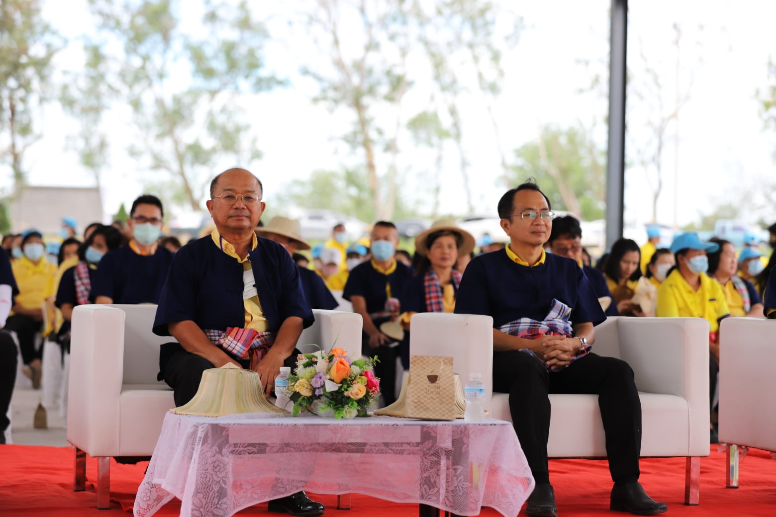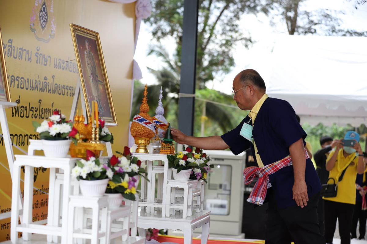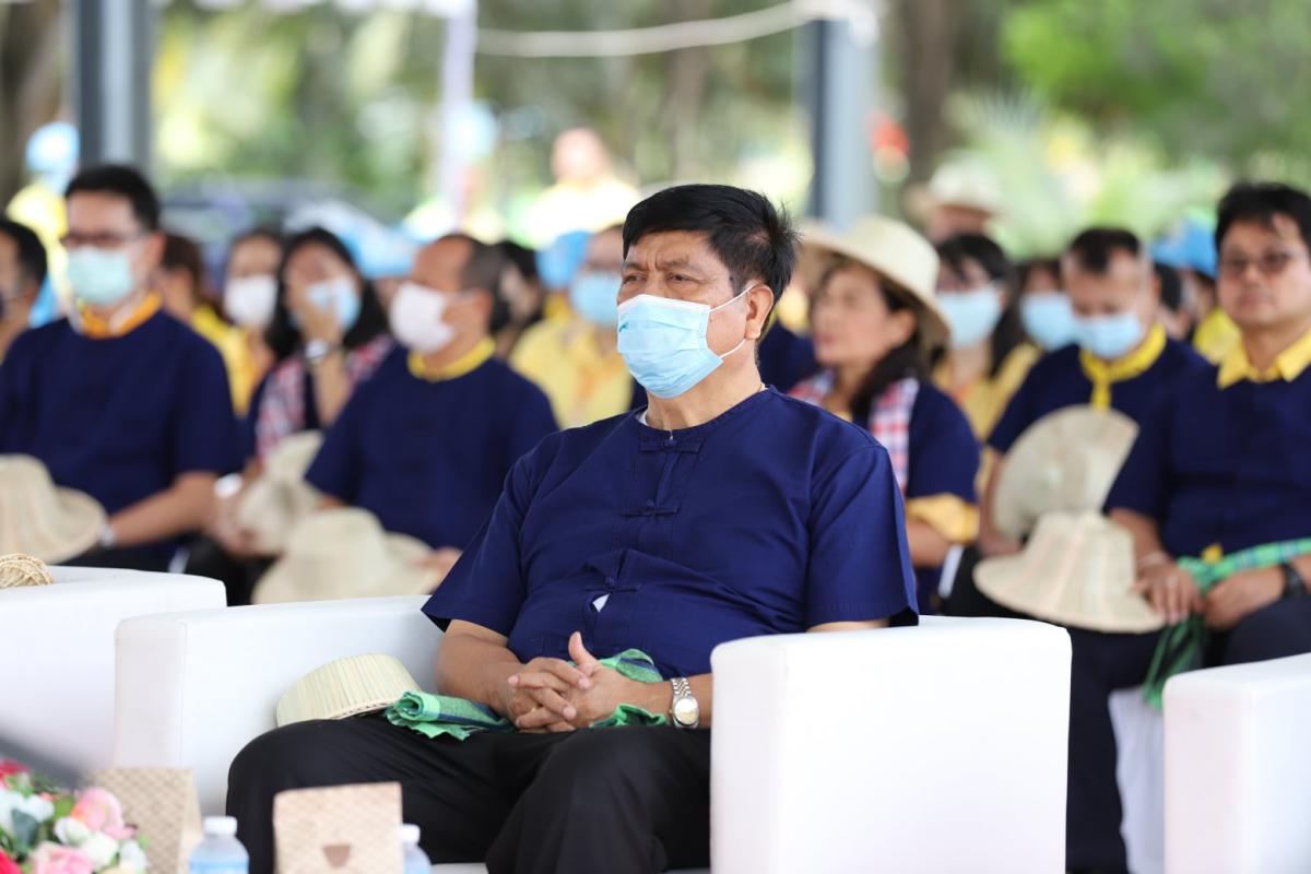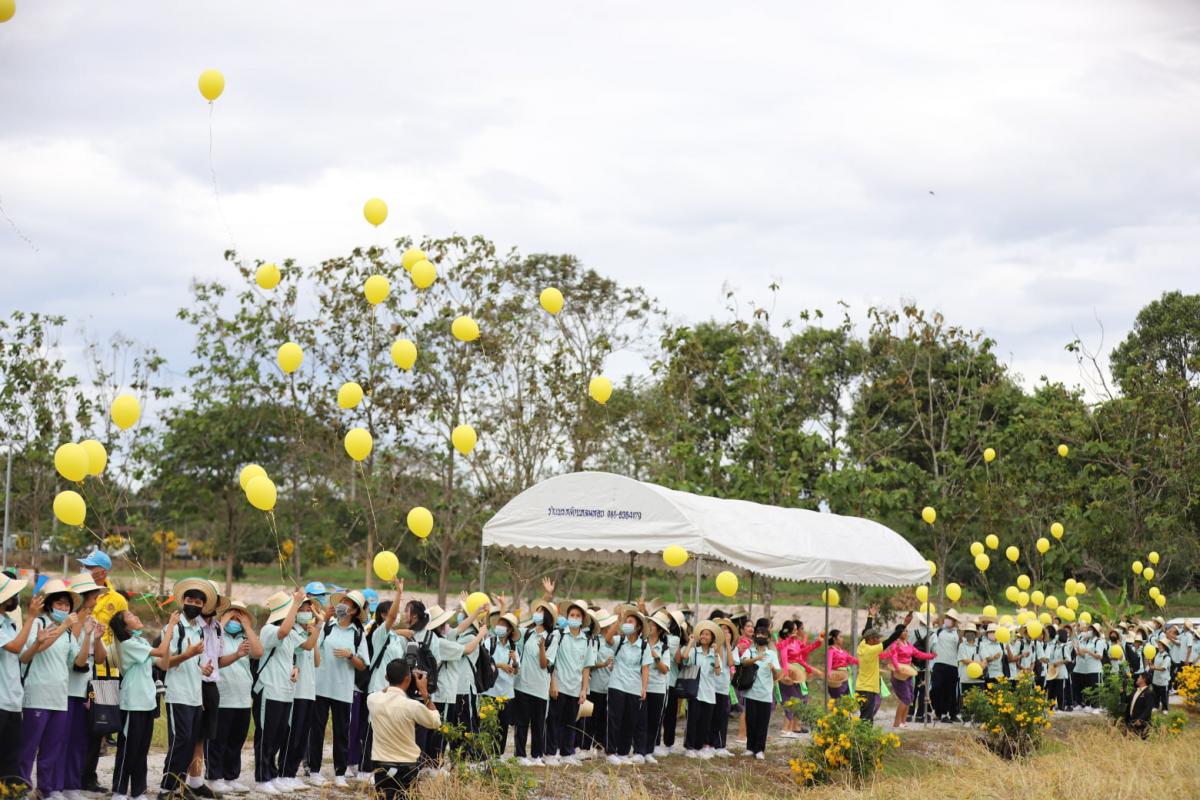 ภายในพิธี นายวุฒิศักดิ์ สิงหเดโช นายอำเภอปลวกแดง ได้เปิดกรวยถวายราชสักการะและร่วมปล่อยลูกโป่งเทิดพระเกียรติ เนื่องในโอกาสร่วมลงมือเกี่ยวข้าวในแปลงนาสาธิต ทั้งนี้ ข้าวที่ได้เก็บเกี่ยวเป็นสายพันธุ์ข้าวเจ้า ขาวดอกมะลิ 105 ที่มีลักษณะเด่นคือ เป็นข้าวเจ้านุ่มค่อนข้างเหนียว ไม่ไวต่อช่วงแสง มีเสถียรภาพการให้ผลผลิตดี ลำต้นแข็งแรง อายุการเก็บเกี่ยว 110 – 115 วัน จากการสอบถามผู้ที่มาร่วมงาน มีความปลื้มปิติและยินดีเป็นอย่างยิ่ง ที่ได้มาร่วมเป็นส่วนหนึ่งในงานสำคัญในครั้งนี้