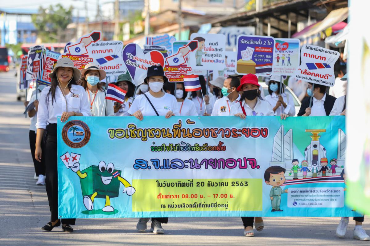 วันที่ 17 ธันวาคม 2563 เวลา 09.00 น. องค์การบริหารส่วนจังหวัดระยอง โดยสำนักปลัดองค์การบริหารส่วนจังหวัดระยอง เดินรณรงค์ประชาสัมพันธ์ให้พี่น้องชาวอำเภอแกลงไปใช้สิทธิเลือกตั้งสมาชิกสภาองค์การบริหารส่วนจังหวัดระยองและนายกองค์การบริหารส่วนจังหวัดระยอง พร้อมกันเพื่อเป็นการประชาสัมพันธ์และสร้างความรู้ความเข้าใจ ในการเลือกตั้งสมาชิกสภาองค์การบริหารส่วนจังหวัดและนายกองค์การบริหารส่วนจังหวัดระยอง โดยในวันที่ 20 ธันวาคม 2563 ตั้งแต่เวลา 08.00 – 17.00 น. กำหนดให้เป็นวันเลือกตั้ง