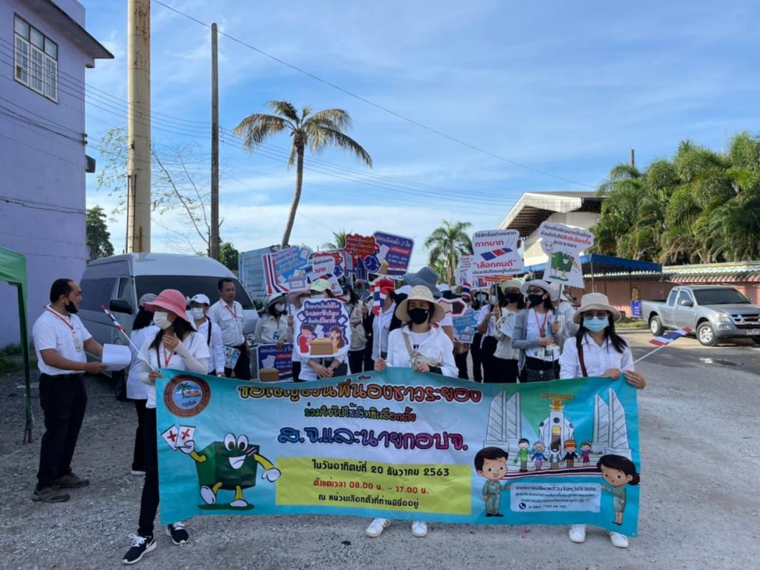 วันที่ 17 ธันวาคม 2563 เวลา 09.00 น. องค์การบริหารส่วนจังหวัดระยอง โดย หน่วยตรวจสอบภายในและกองคลัง ร่วมเดินรณรงค์ประชาสัมพันธ์ให้พี่น้องชาวอำเภอนิคมพัฒนาไปใช้สิทธิเลือกตั้งสมาชิกสภาองค์การบริหารส่วนจังหวัดระยองและนายกองค์การบริหารส่วนจังหวัดระยอง พร้อมกันเพื่อเป็นการประชาสัมพันธ์และสร้างความรู้ความเข้าใจ ในการเลือกตั้งสมาชิกสภาองค์การบริหารส่วนจังหวัดและนายกองค์การบริหารส่วนจังหวัดระยอง โดยในวันที่ 20 ธันวาคม 2563 ตั้งแต่เวลา 08.00 – 17.00 น. กำหนดให้เป็นวันเลือกตั้ง
