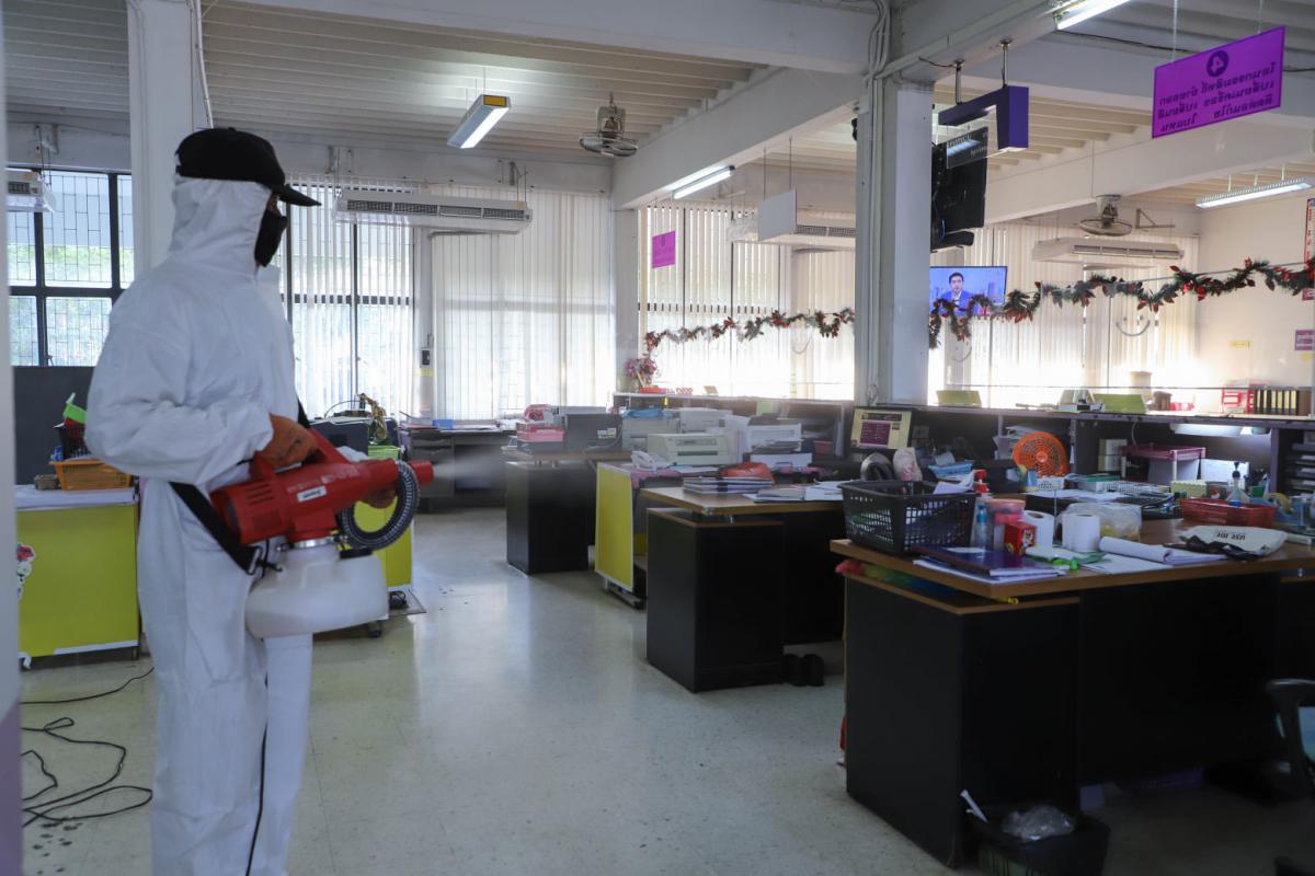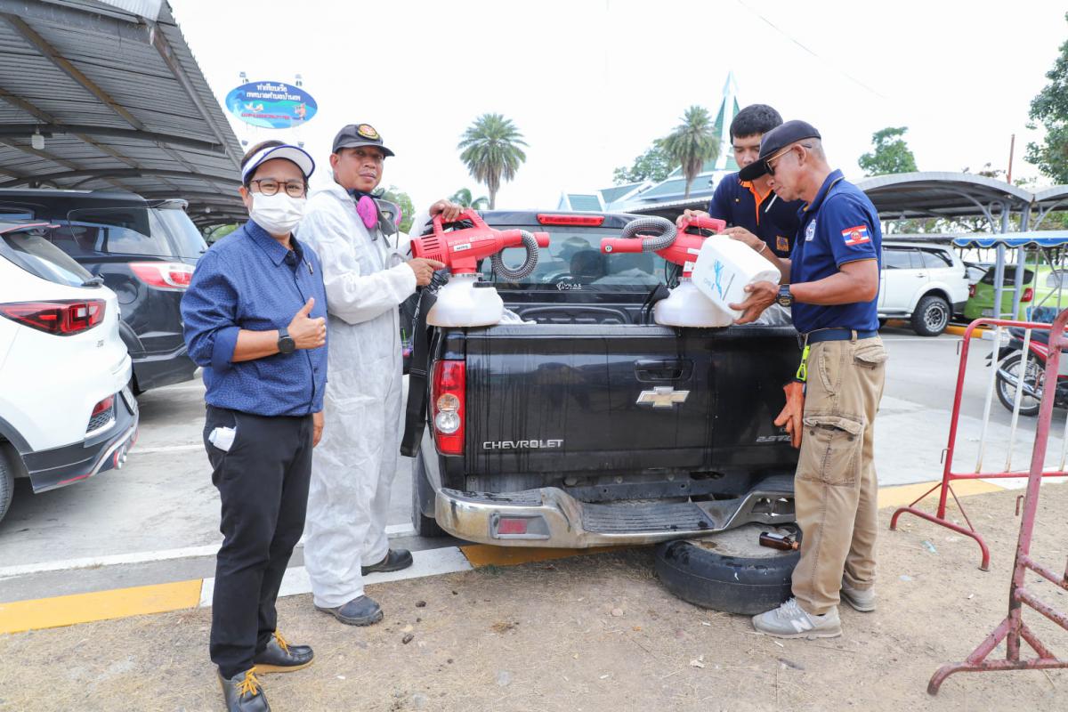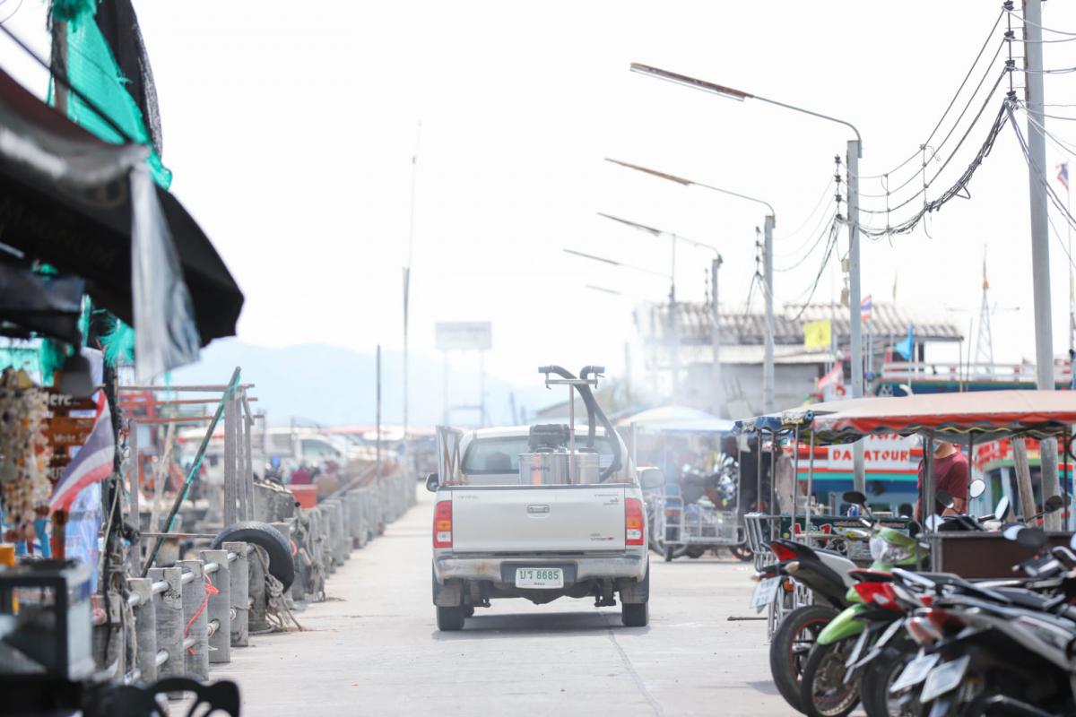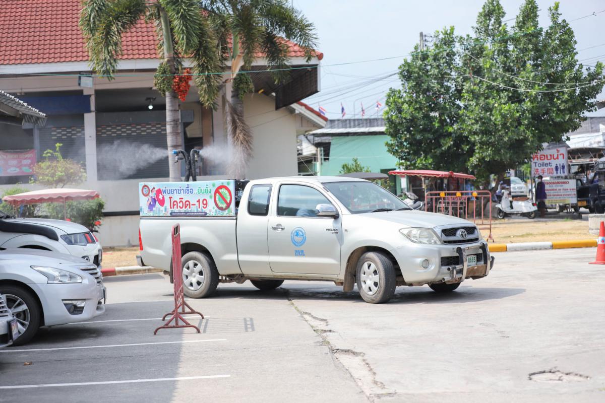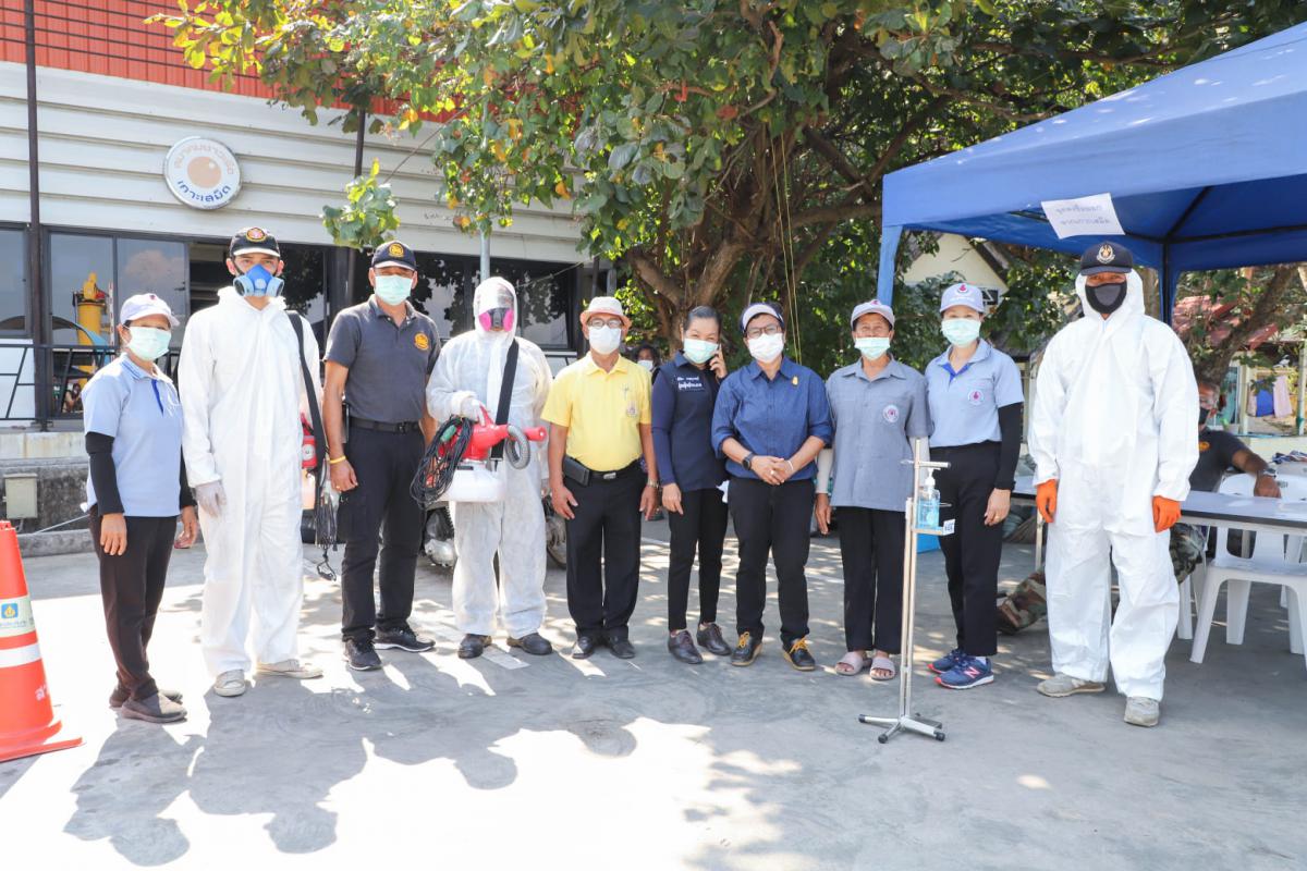 องค์การบริหารส่วนจังหวัดระยอง นำเจ้าหน้าที่ทำการฉีดพ่นน้ำยาฆ่าเชื้อ บริเวณสถานที่ที่มีความเสี่ยงต่อเชื้อไวรัส Covid-19