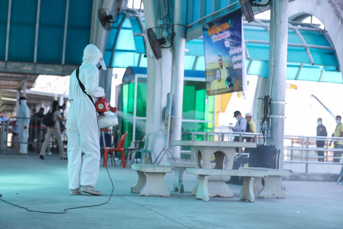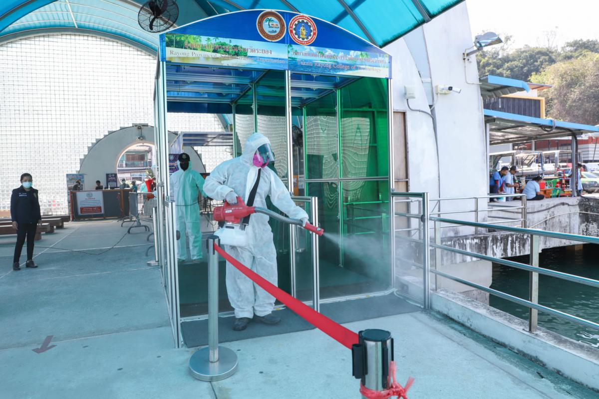 วันที่ 28 ธันวาคม 2563 องค์การบริหารส่วนจังหวัดระยอง โดยฝ่ายป้องกันและบรรเทาสาธารณภัย กองทรัพยากรธรรมชาติและสิ่งแวดล้อม นำเจ้าหน้าที่ทำการฉีดพ่นน้ำยาฆ่าเชื้อ บริเวณสถานที่ที่มีความเสี่ยงต่อเชื้อไวรัส Covid-19 ที่กำลังระบาดอยู่ในจังหวัดระยองขณะนี้ ได้แก่ ท่าเรือเพ ท่าเรือนวลทิพย์ ท่าเทียบเรือเทศบาลตำบลบ้านเพ ท่าเทียบเรือเกาะเสม็ด และสำนักงานขนส่งจังหวัดระยอง สาขาอำเภอแกลง