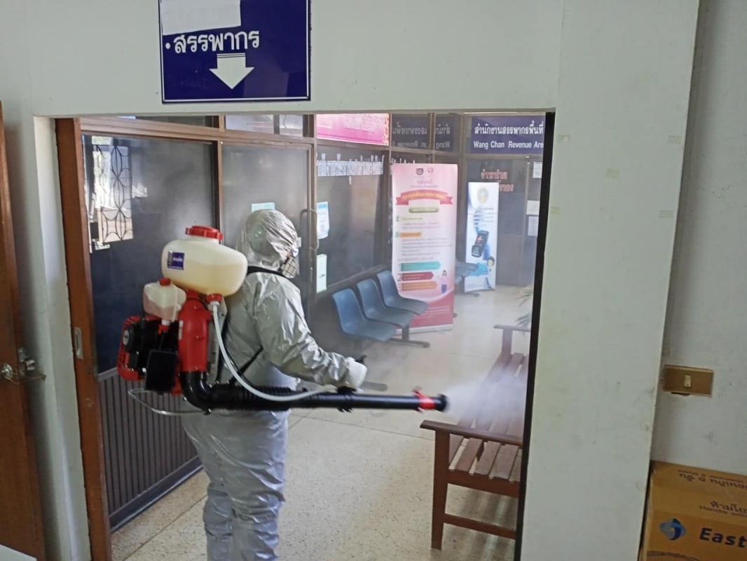 องค์การบริหารส่วนจังหวัดระยองจัดเจ้าหน้าที่เข้าทำการฉีดพ่นน้ำยาฆ่าเชื้อไวรัส Covid-19 บริเวณครัวอบจ.ระยอง อำเภอวังจันทร์ สถานีตำรวจวังจันทร์ หนองตะพาน (บ้านค่าย)