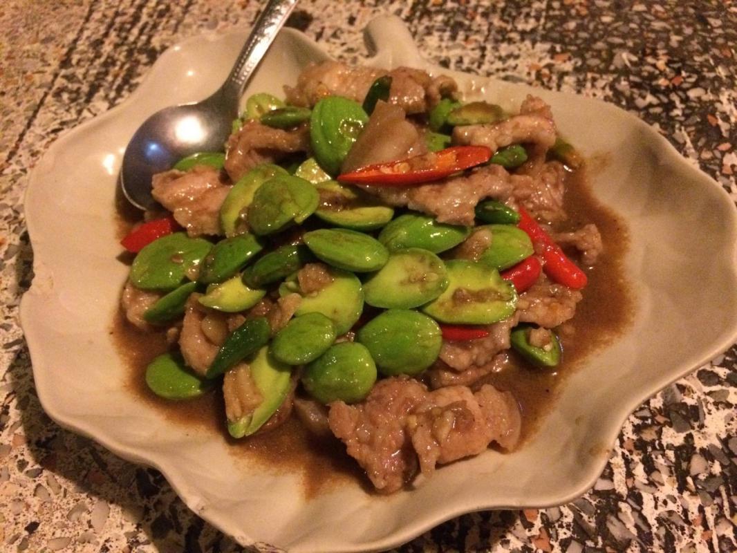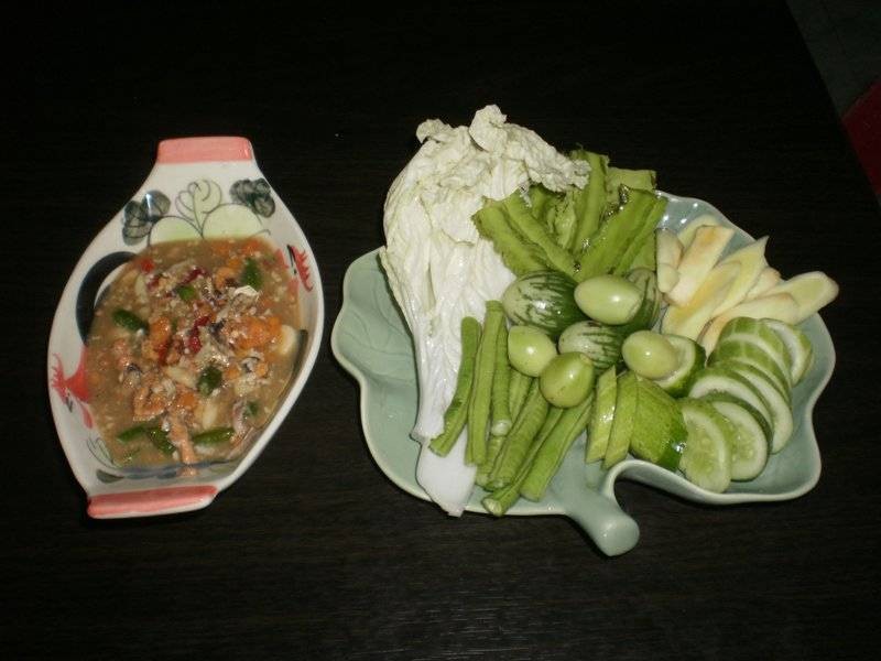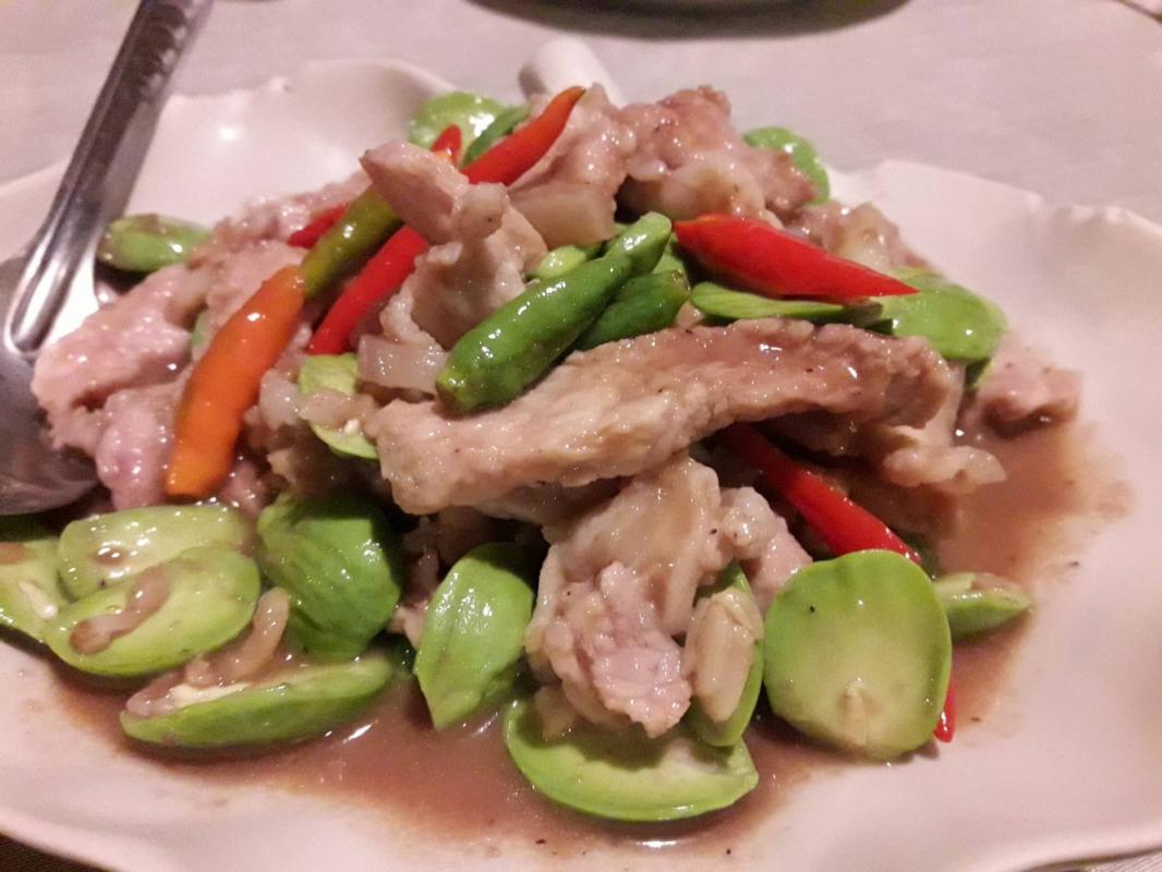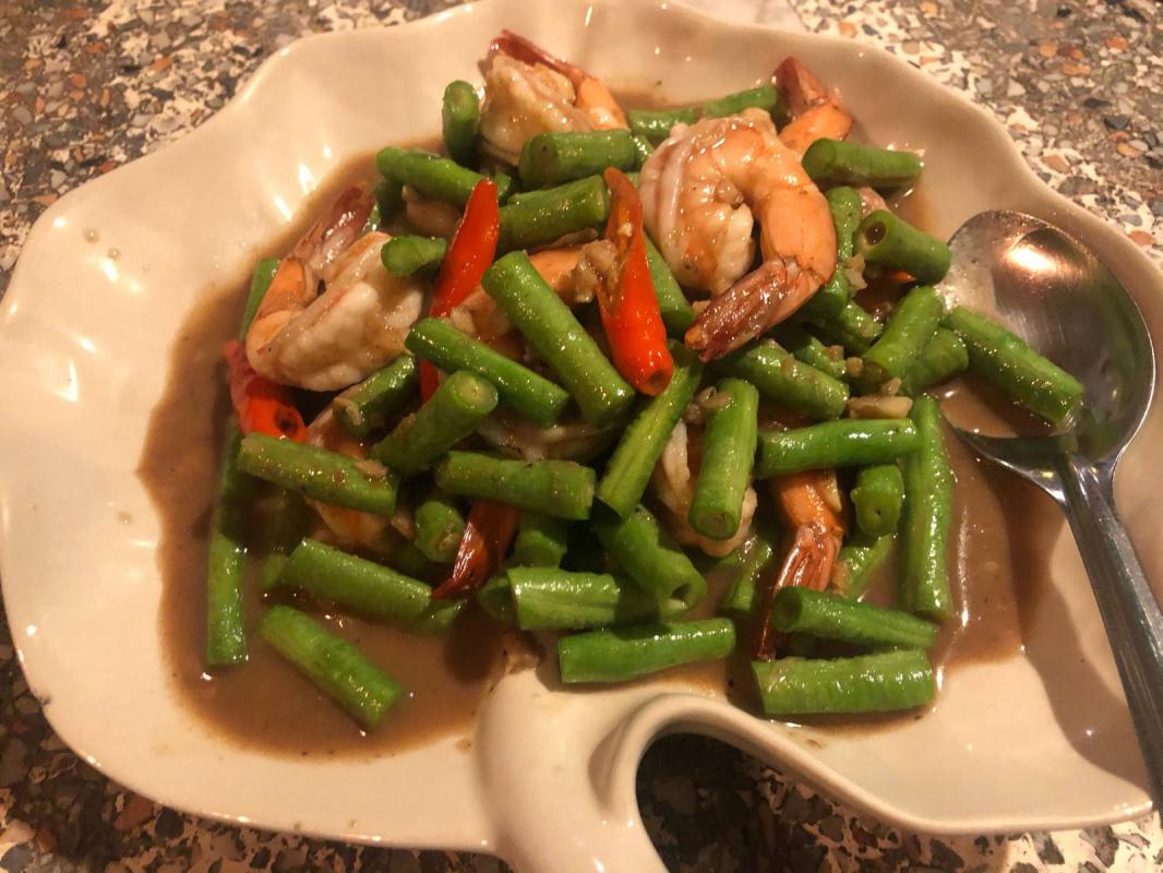แบบบ้านๆชาวริมเลของเมืองระยอง ซึ่งมีเมนูอาหารดังนี้ หมูสามชั้นผัดกะปิถั่วฝักยาว หมึกผัดไข่เค็ม