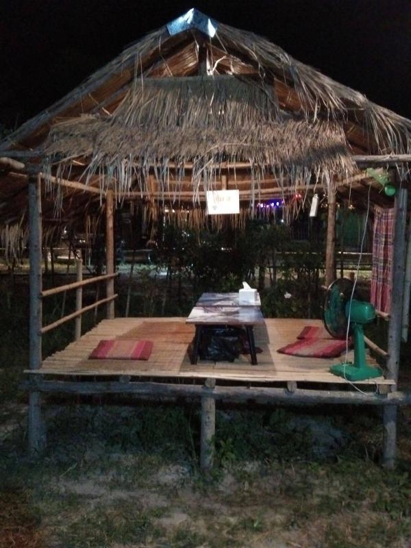 กองฟาง สวนย่อม โต๊ะอาหารเป็นกระต๊อบหลังๆ ให้นั่ง ห่างๆกันพอสมควร เวลาจะเรียกพนักงานเค้าจะมี