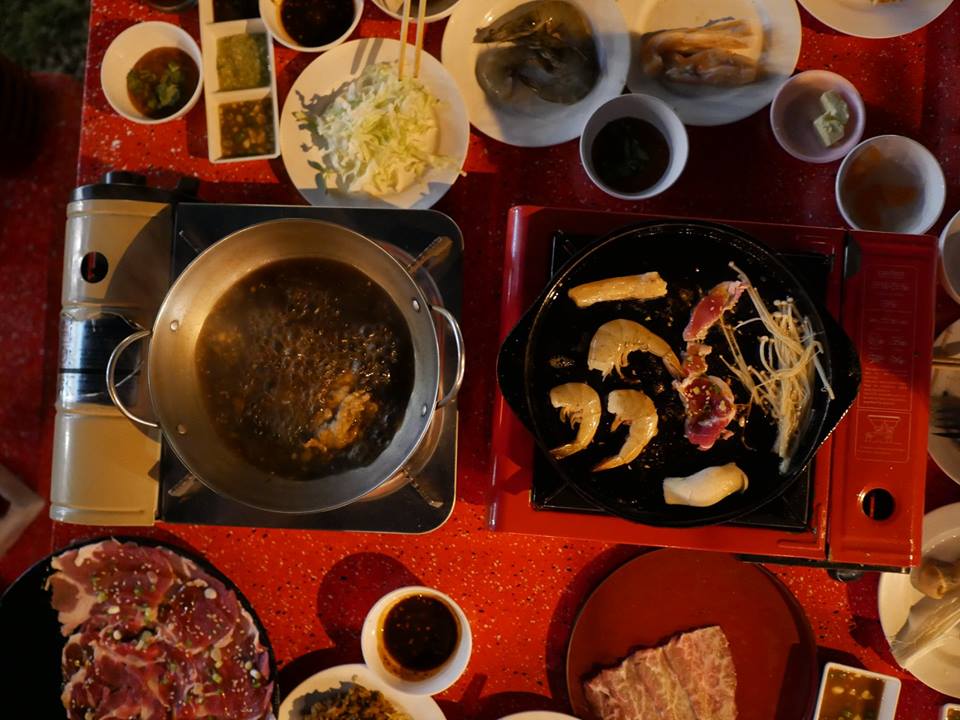ชาบูคู่ปิ้งย่าง ที่ Beef More More เนื้อโคขุน หมู หมึก กุ้ง เสิร์ฟมา 2 เตา กระทะร้อนย่างเนยและชาบูน้ำซุปปลาโอ บุฟเฟ่ต์ ปิ้งย่าง บ้านฉาง ระยอง
