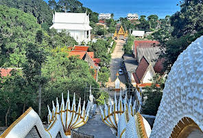 หากเรากลับหลังหันมองลงมาจากข้างบน เราจะเห็นวิว ทิวทัศน์ของทะเลหาดแหลมแม่พิมพ์แบบมุมกว้างเลยทีเดียว