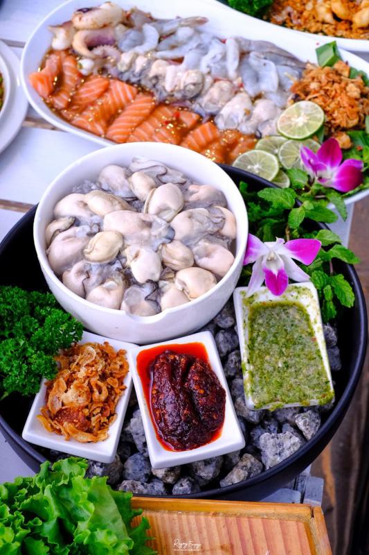เมนูอาหารของที่นี่มีหลากหลายนอกจากซีฟู้ดแล้วยังมีอาหารเช่น เมนูยำ กุ้งแม่น้ำเผา ถั่วหมูกรอบ ไข่ตุ๋นทะเลหม้อไฟ ทะเลดองเกาหลี
