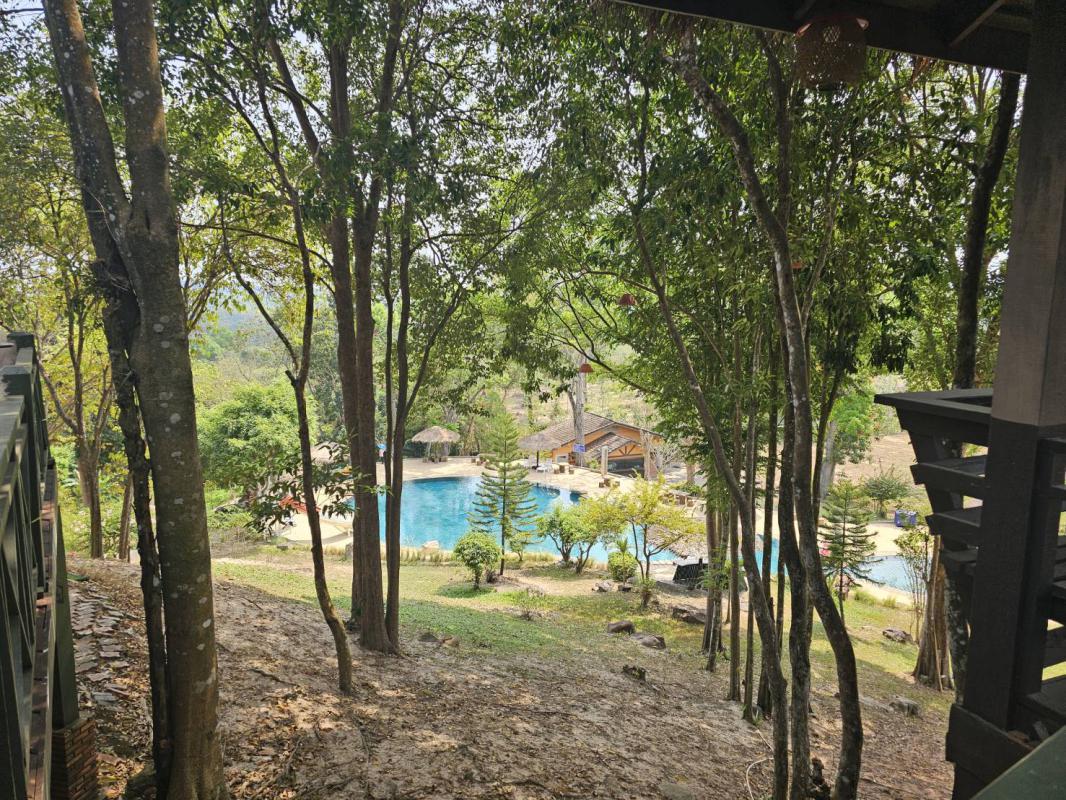 พร้อมมีสระว่ายน้ำอยู่ท่ามกลางธรรมชาติ รายล้อมไปด้วยต้นไม้นานาพันธุ์