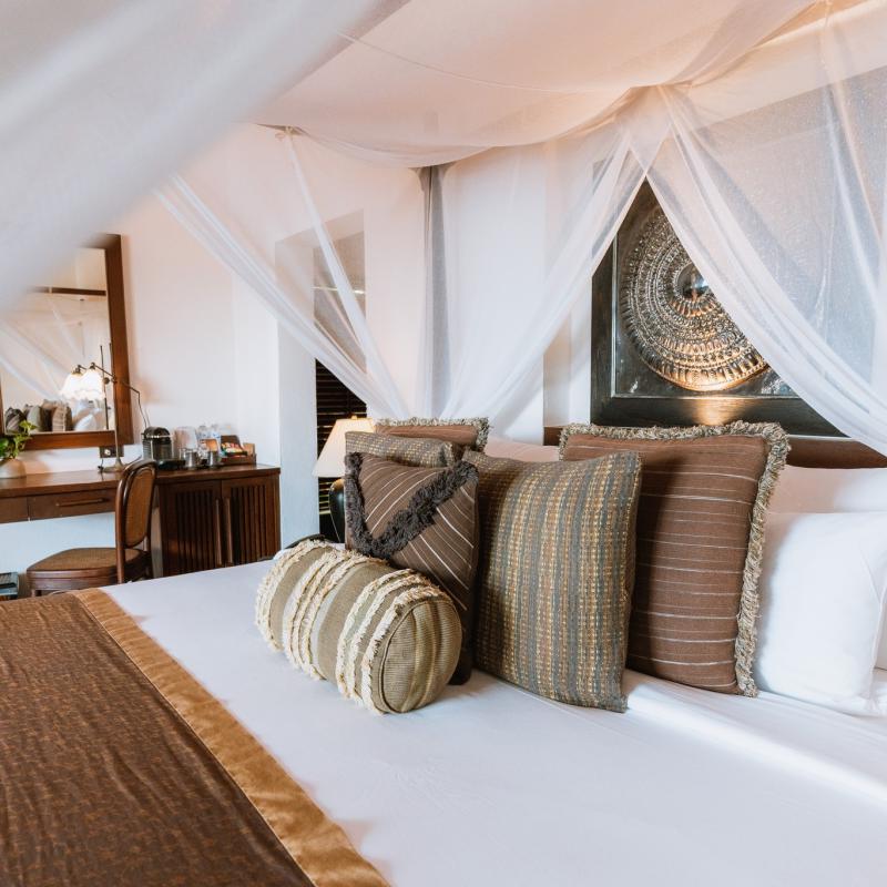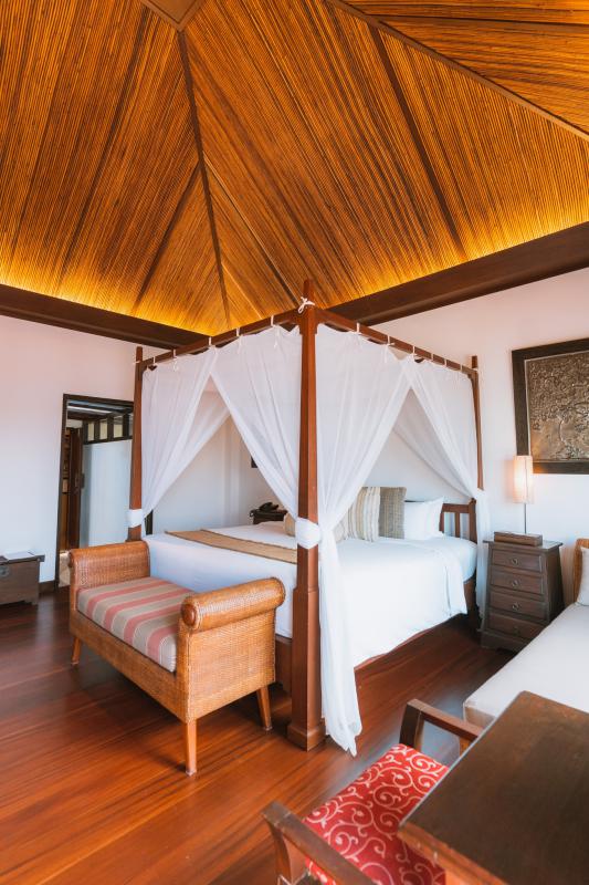 โดยมีการตกแต่งอย่างสวยงามด้วยไม้ ห้องพักส่วนใหญ่จะมองเห็นวิวทะเล สามารถชมวิวพระอาทิตย์ตกได้ทุกห้อง