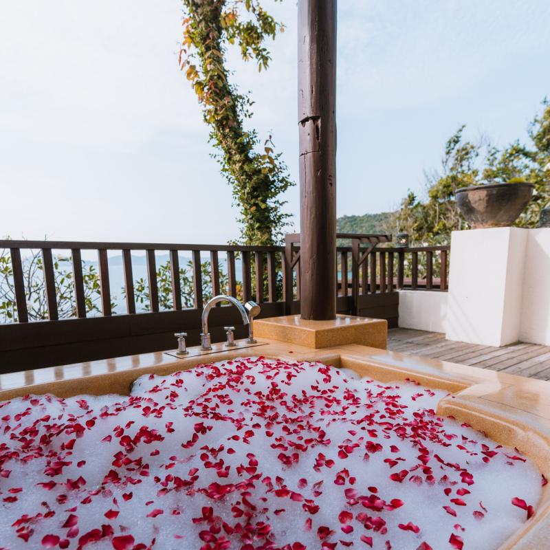 มีระเบียงส่วนตัวขนาดใหญ่พร้อมอ่างสปา ห้องพักกว้างขวาง พร้อมสิ่งอำนวยความสะดวกมากมาย เหมาะสำหรับครอบครัว