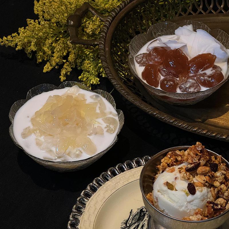 ยำส้มโอน้ำปลาหวาน วุ้นเส้นผัดสามฉุน ใส่กุ้งแชบ๊วย ไอศครีมกล้วยเชื่อม กระยาสารท ทางร้านไม่ได้เป็นการอวยร้านแต่อย่างใด