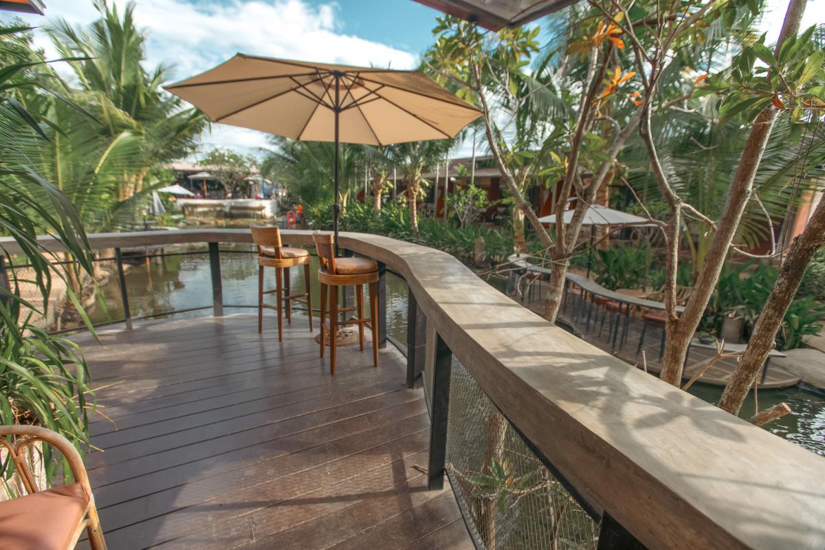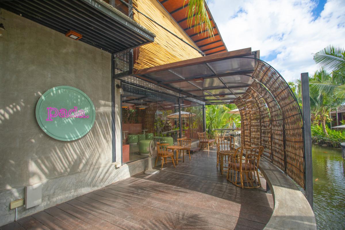 บริเวณริมบ่อน้ำยังมีการตกแต่งเป็นมุมนั่งชิลสวยๆ และยังมีร้านกาแฟ Pada Cafe ภายในรีสอร์ทที่ตกแต่งในสไตล์บาหลี