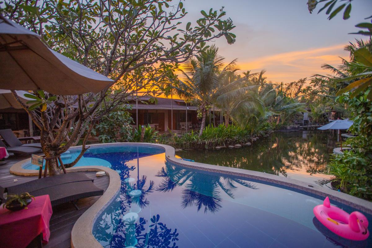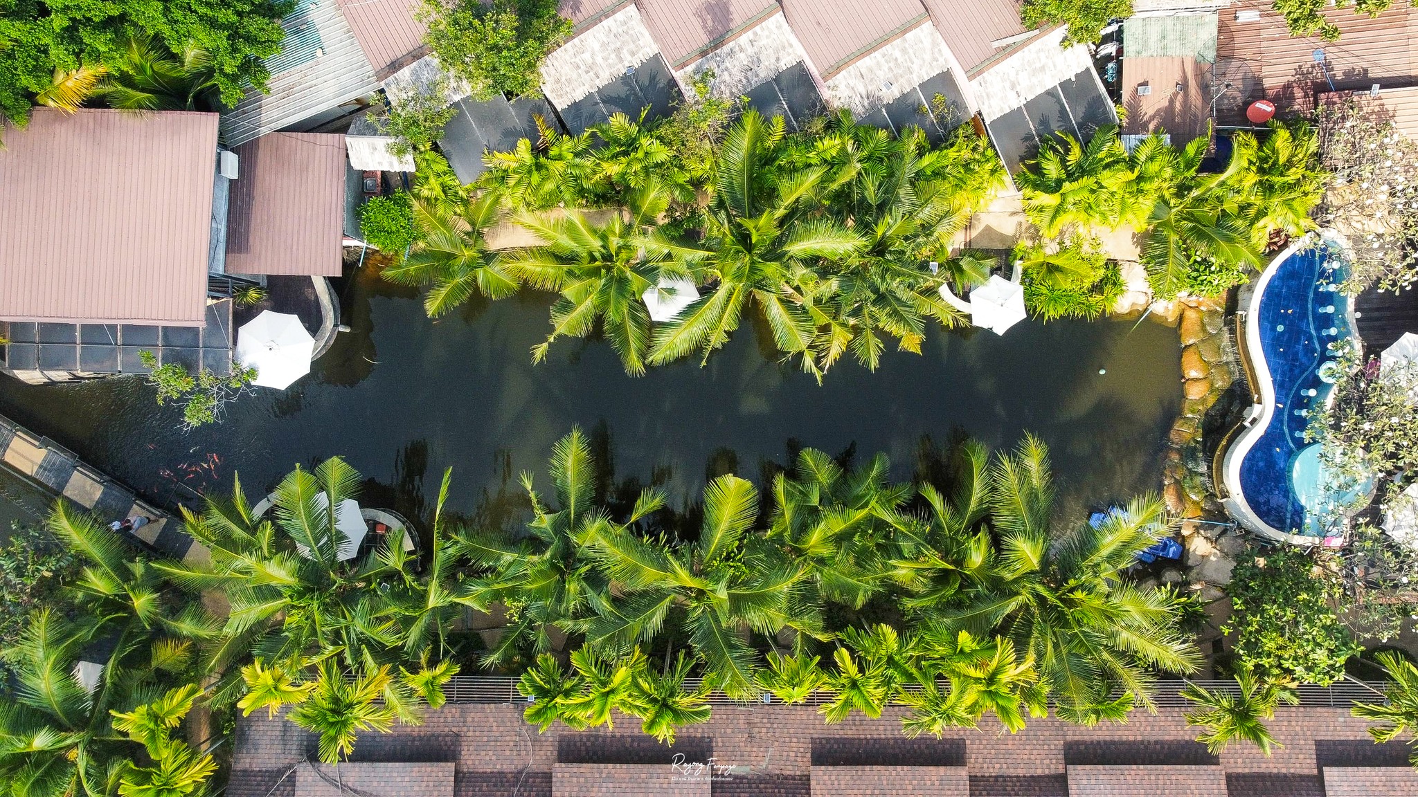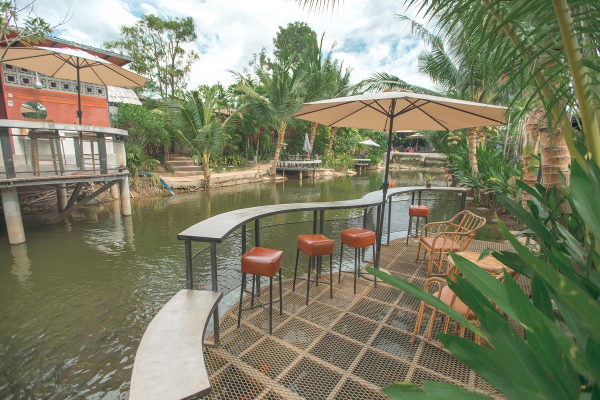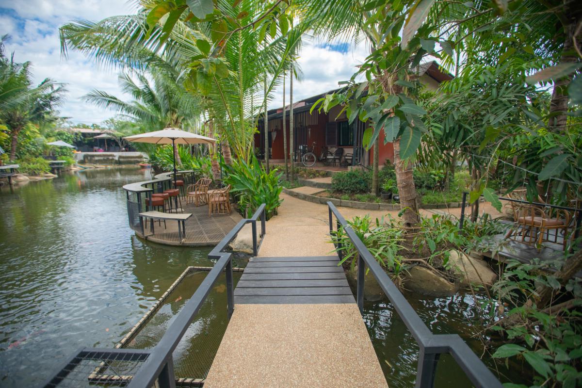 ต้นมะพร้าวและธารน้ำที่ตัดผ่านกลางรีสอร์ท บอกเลยว่าฟินมากกกก ห้องพักของที่นี่มีด้วยกันถึง 5 รูปแบบเลยนะ และที่สำคัญ
