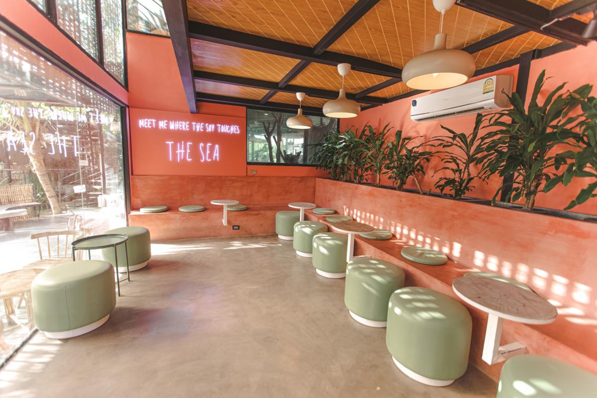 เน้นใช้โทนสีชมพูและสีเขียว ซึ่งมีการนำเฟอร์นิเจอร์ไม้มาตกแต่งทำให้คาเฟ่ดูละมุนมาก บางมุมให้ฟิลแบบคาเฟ่เกาหลีเลย
