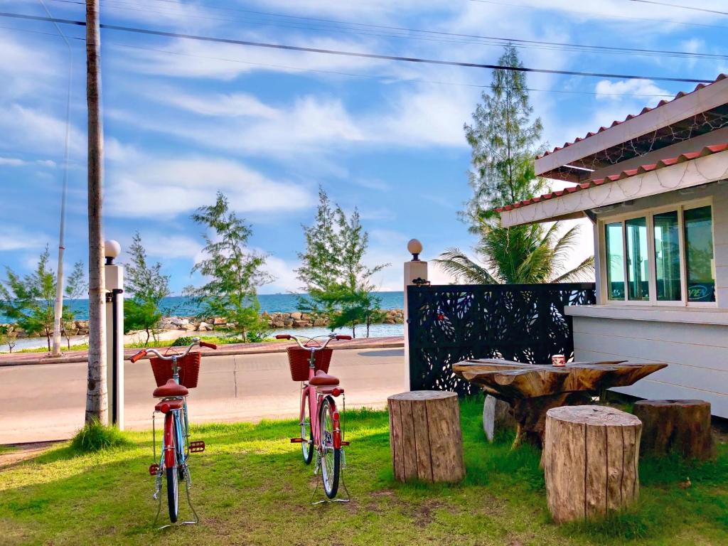 ก็สามารถเดินข้ามจากที่พักไปนั่งชิวๆ ที่ริมทะเลได้เลย ฝั่งชายหาดก็จะมีของขายเยอะมาก จะนั่งร้านหรือเอาเก้าอี้สนาม