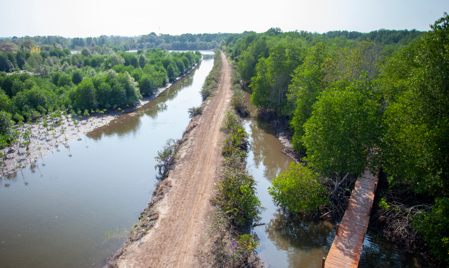 ประมาณจากจังหวัดระยองเพื่อก่อสร้าง สะพานรักษ์แสม สะพานไม้ที่เปิดให้นักท่องเที่ยวได้มาเที่ยวชม