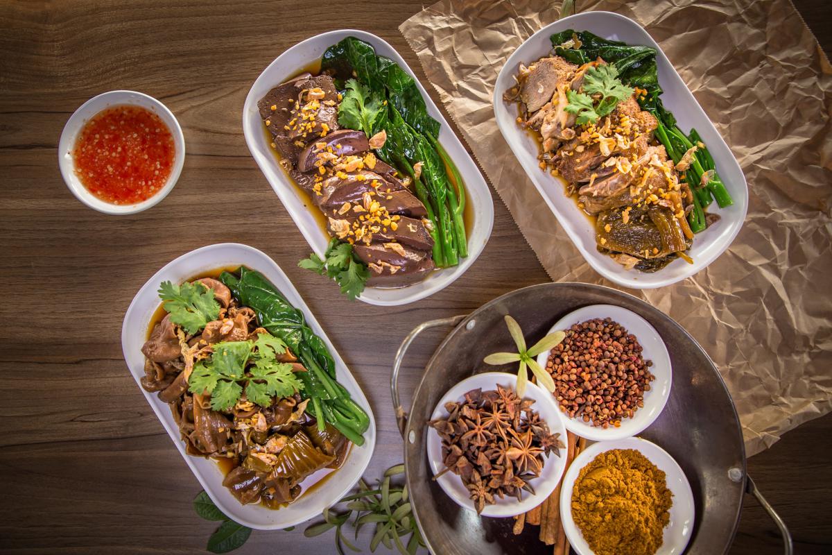 ยำส้มโอโบราณ อร่อยฉ่ำ จะกินแบบเมี่ยงหรือกินเล่นก็ได้ เป็นอีกเมนูที่สั่งเกือบทุกโต๊ะ แกงเผ็ดเป็ดย่าง ทีเด็ดคือ “ย่างเป็ดด้วยเตาถ่าน”
