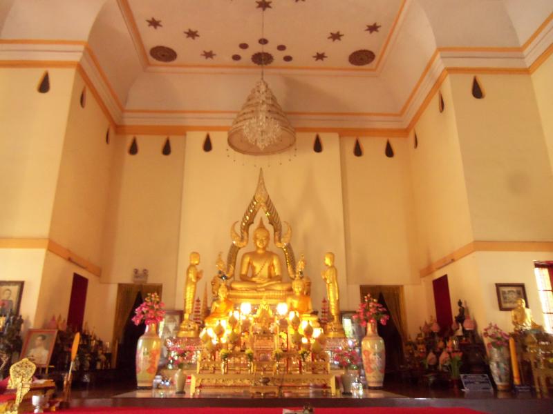 พระพุทธรูปองค์พระประธานจำลองมาจากพระพุทธชินราช วัดมหาธาตุ จังหวัดพิษณุโลก บริเวณมุมกำแพง