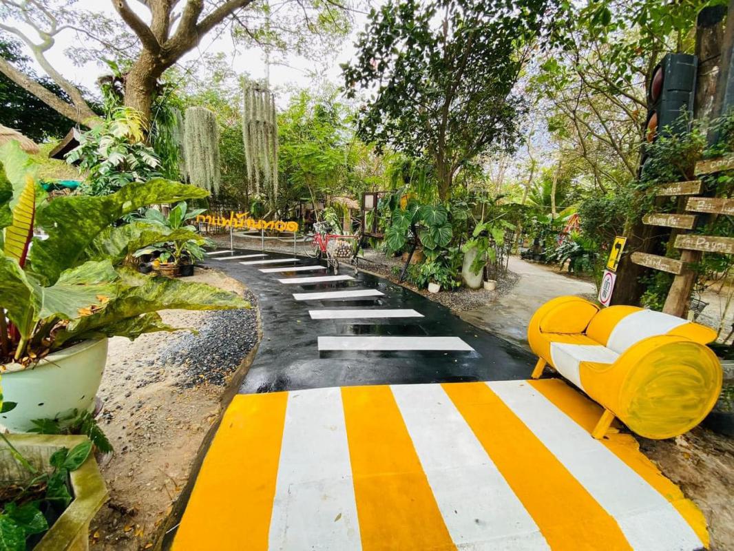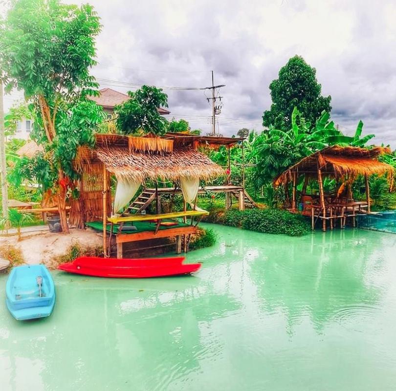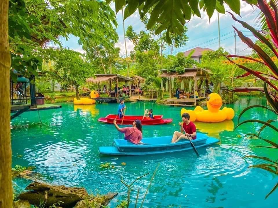 บรรยากาศร้านร่มรื่นไปด้วยพันธุ์ไม้ มีมุมให้ถ่ายรูปได้หลายมุม มีสระน้ำให้พายเรือเล่น