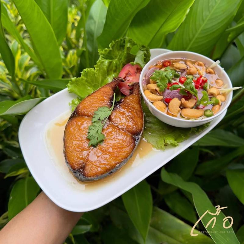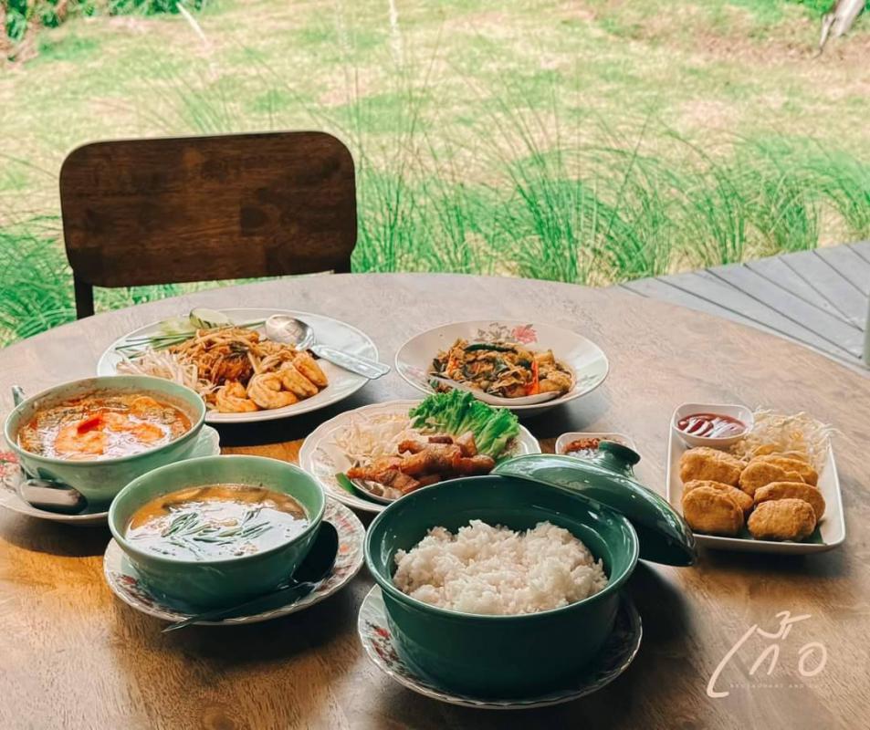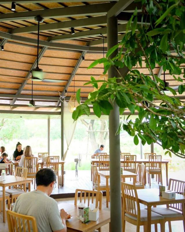 ตัดกับสีเขียวรอบตัวร้าน มองไปทางไหนก็สบายตา มีทั้งโซน indoor และ