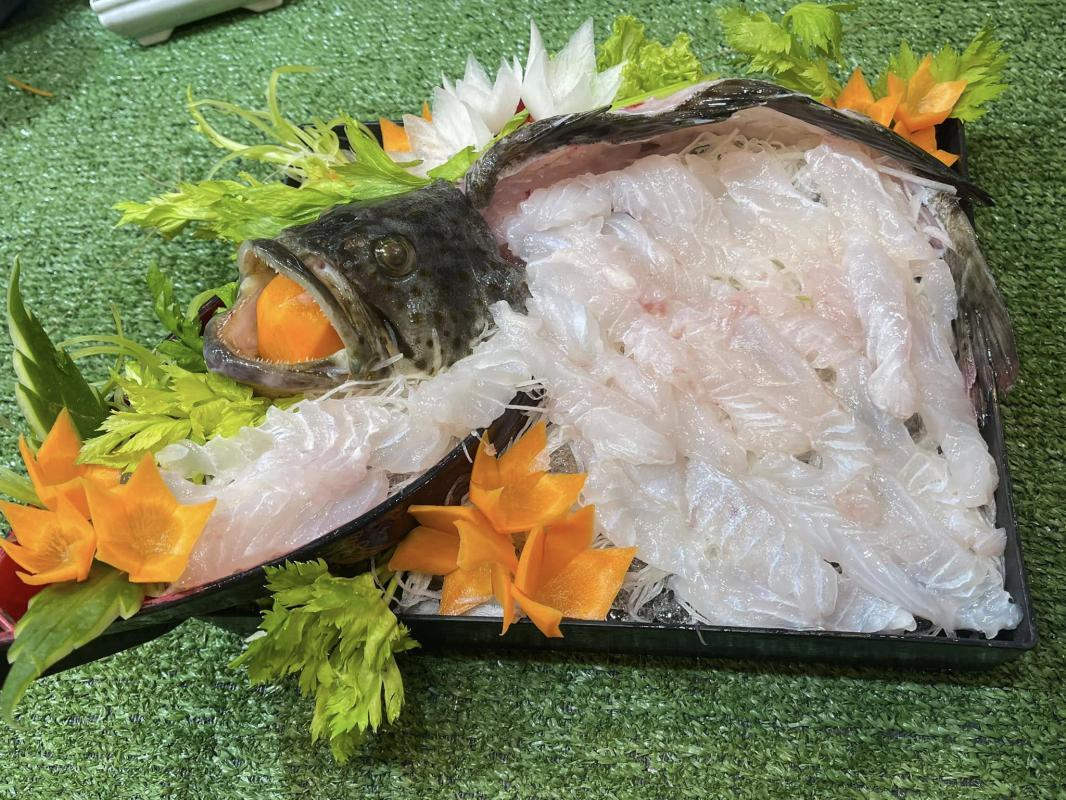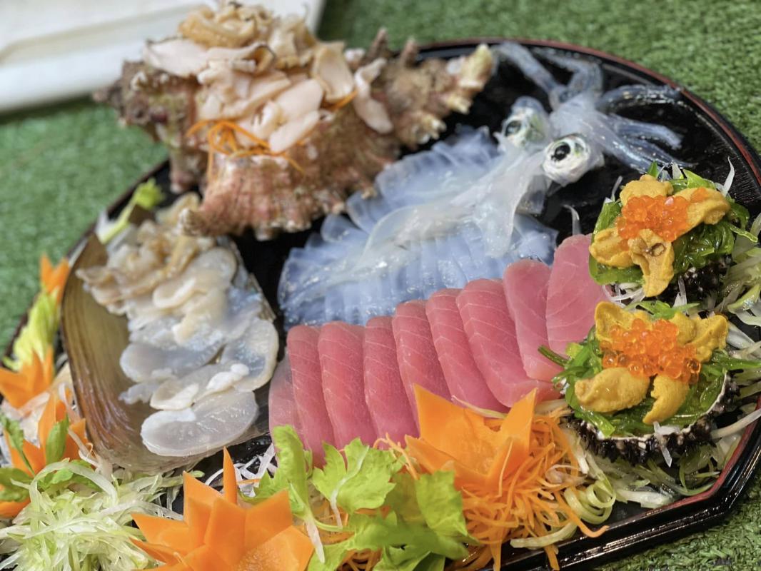 หมึกผัดน้ำดำ ยำปูดำไข่ดอง และทีเด็ดของร้านคือซาชิมิรวม ทางร้านยังมีอาหารอีกมากมาย