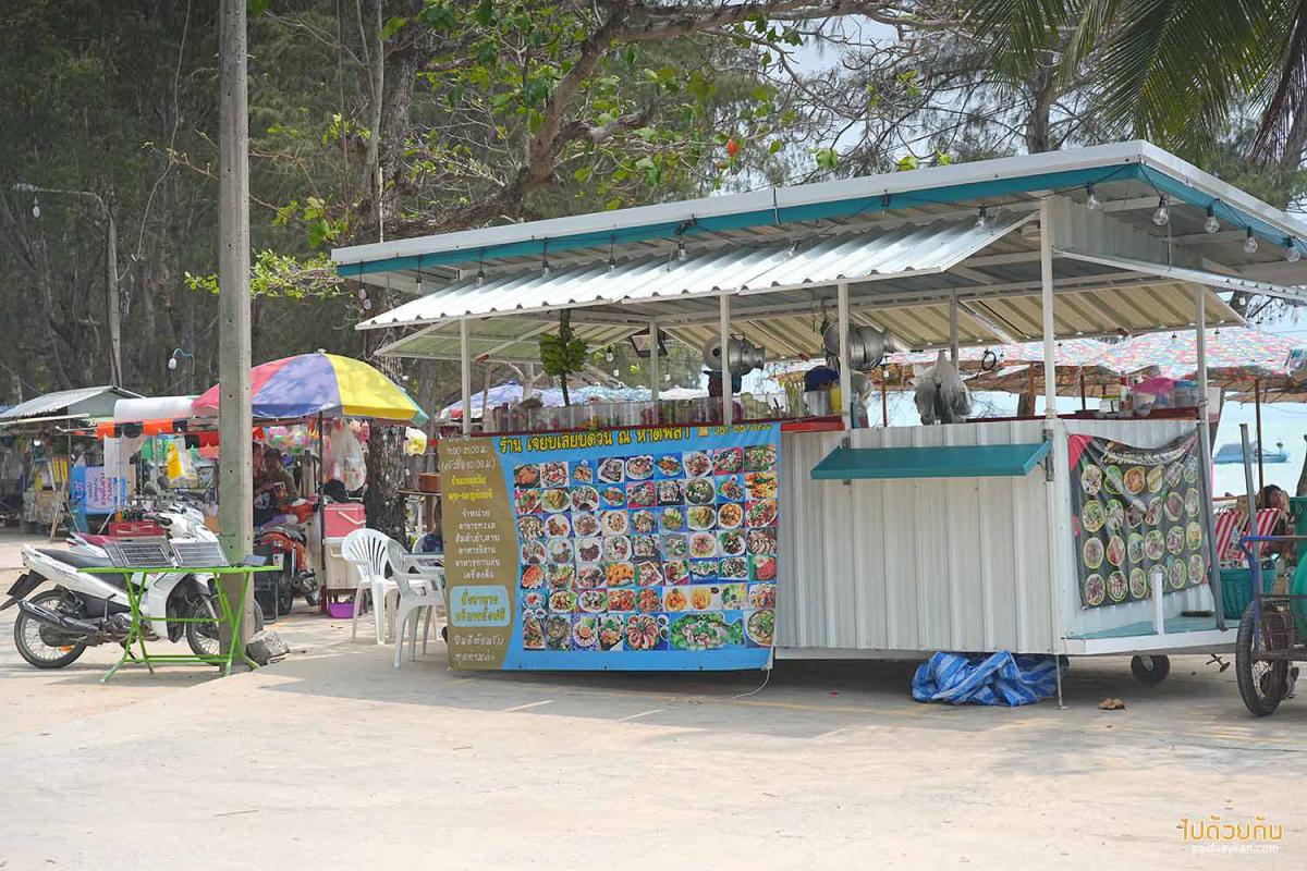 ร้านอาหารทะเลหลายร้าน ชายหาดค่อนข้างยาวมาก เกือบ 3 กิโลเมตร หากต้องการหามุมเงียบสงบ และมี