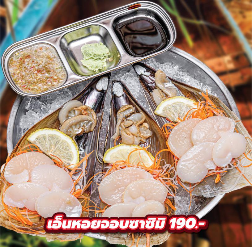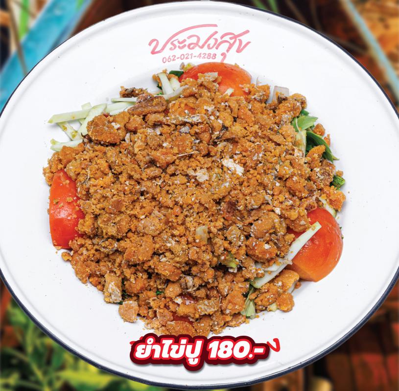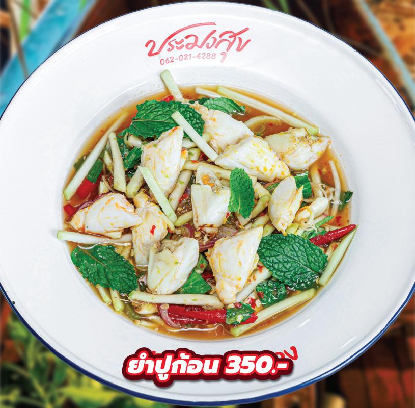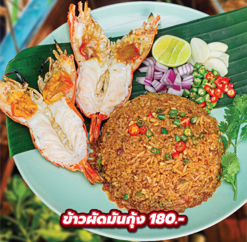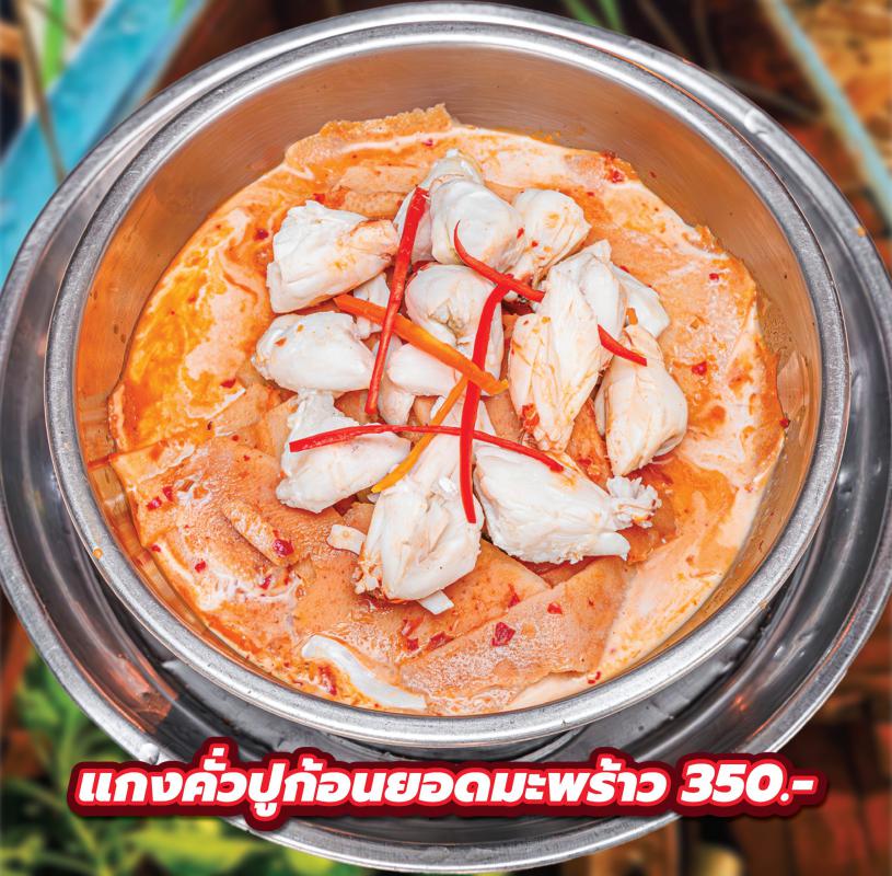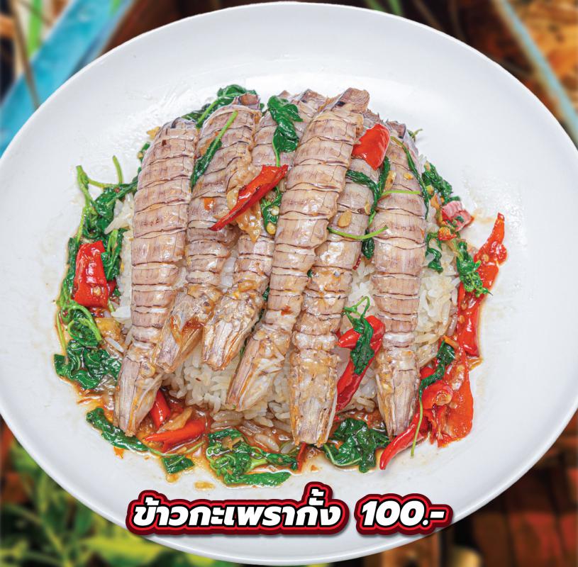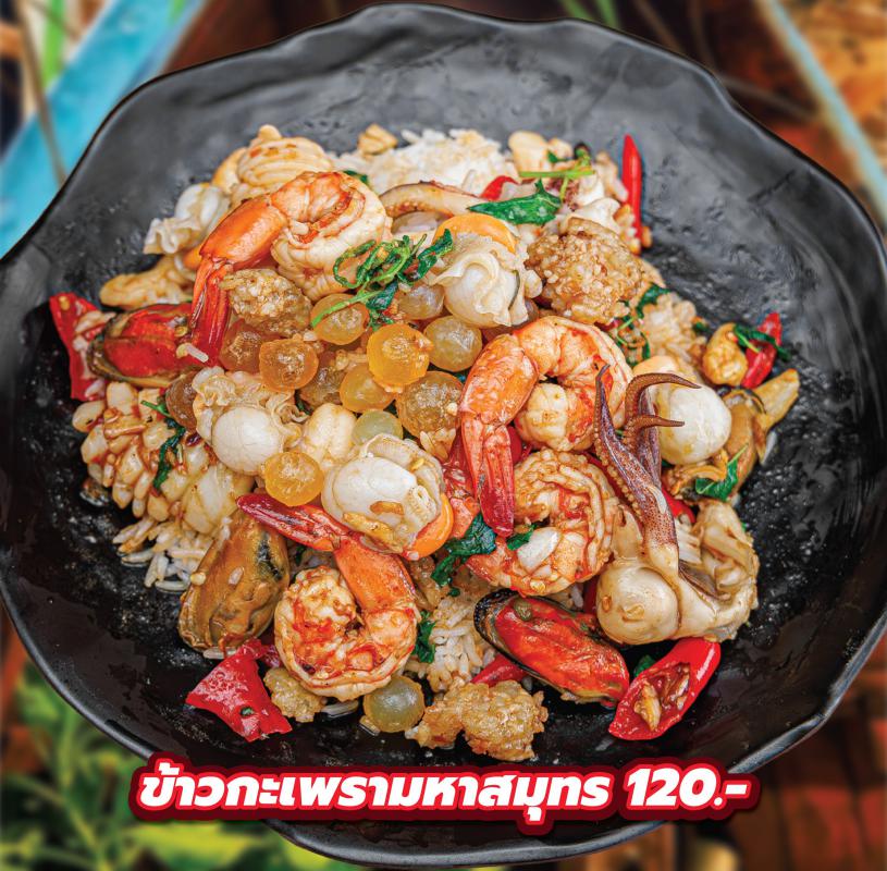 ข้าวขยำปู ข้าวกระเพรามหาสมุทร ปลาหมึกผัดน้ำดำ เอ็นหอยจอบซาชิมิ แกงส้มชะอมกุ้ง+ไข่ปลา