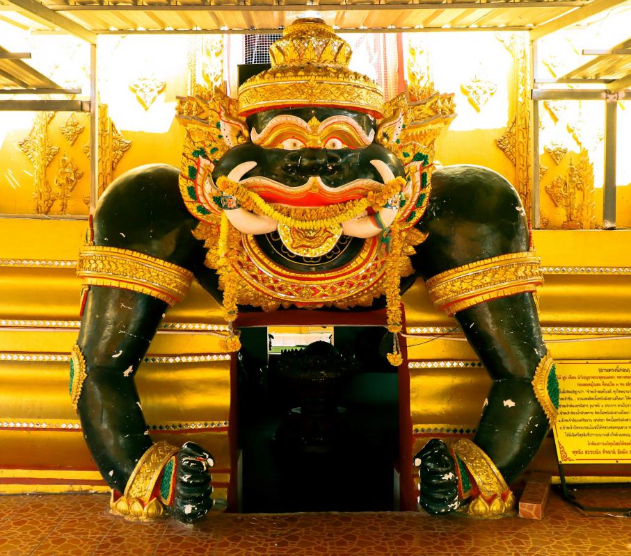 ทรงสุบรรณ ที่มีการลวดลายสวยงามรอบพระอุโบสถอีกด้วยค่ะ และรอบๆ อุโบสถ ยังมีประติมากรรมทาง