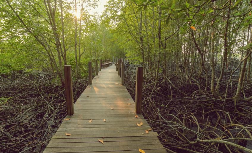 สะพานไม้เดินชมทัศนียภาพและระบบนิเวศน์คลองท่าตาโบ๊ย