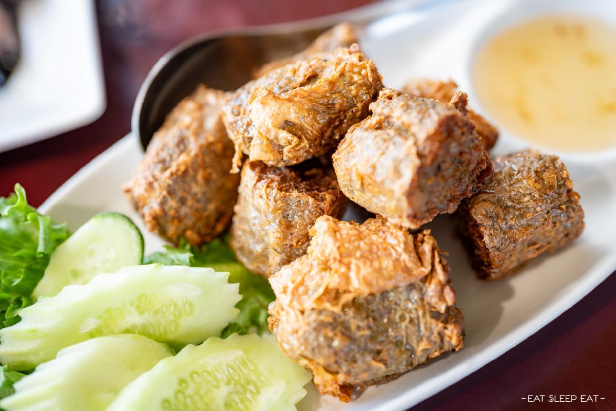 ร้านนี้เป็นอาหารพื้นบ้านชื่อดังในชุมชนเก่าปากน้ำประแส ที่มีสูตรลับและวัตถุดิบแปลกใหม่ตามฤดูกาล