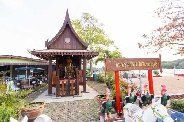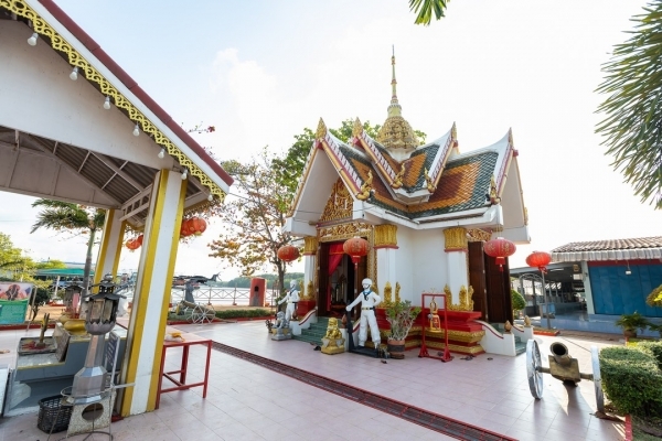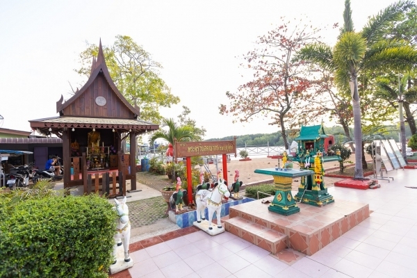ขวาไปอีกเล็กน้อย พอข้ามสะพานก็จะพบศาลอยู่ฝั่งซ้ายมือ