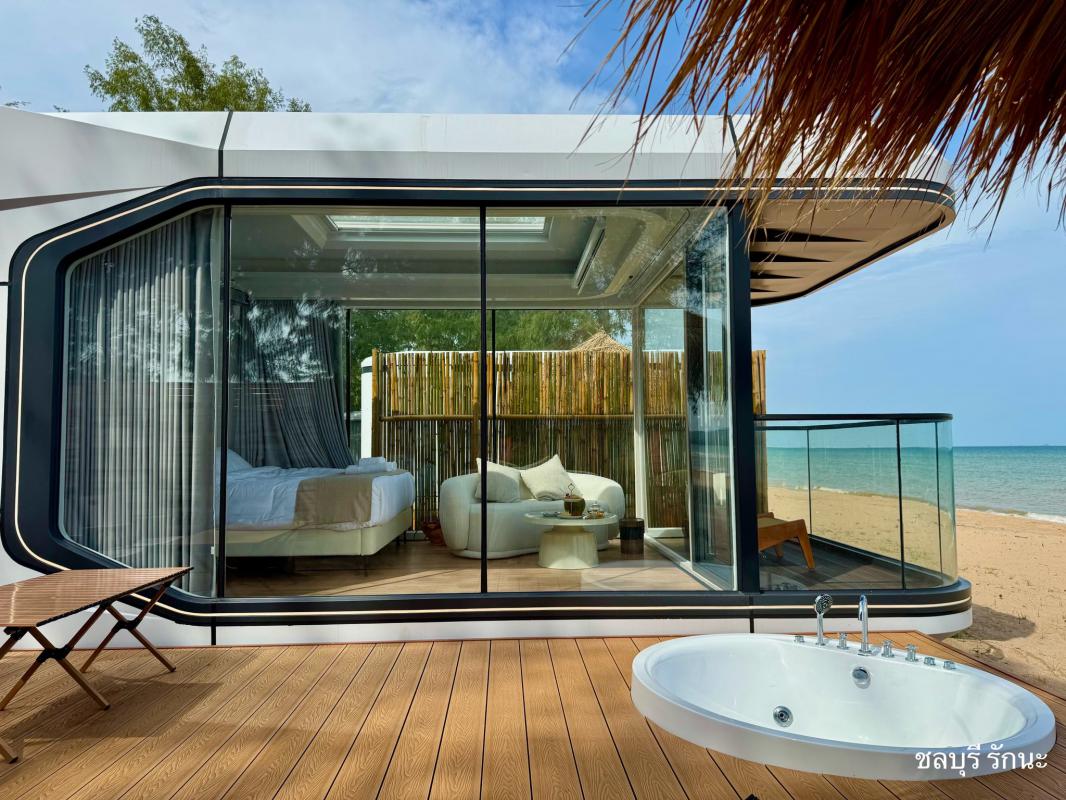 ใกล้สนามบินอู่ตะเภา มีอ่างจากุชชี่ทุกห้อง วิวทะเลสุดสายตา บรรยากาศสบายๆ ภายในห้องสั่งด้วยระบบเสียง