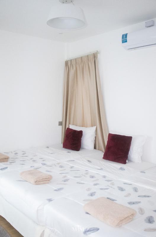 โทนสีขาว ดูดี มีพื้นที่กว้างขวาง เข้าพักได้ถึง 15 คน ภายในบ้านมีห้องนั่งเล่น มีตู้เกมส์สำหรับ