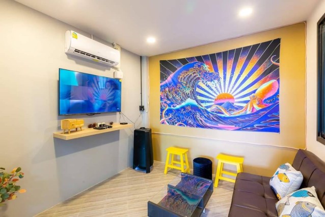 บ้านครบครัน อีกทั้งยังมีห้องนั่งเล่น พร้อม TV คาราโอเกะ Free WI-FI ห้องครัวพร้อม