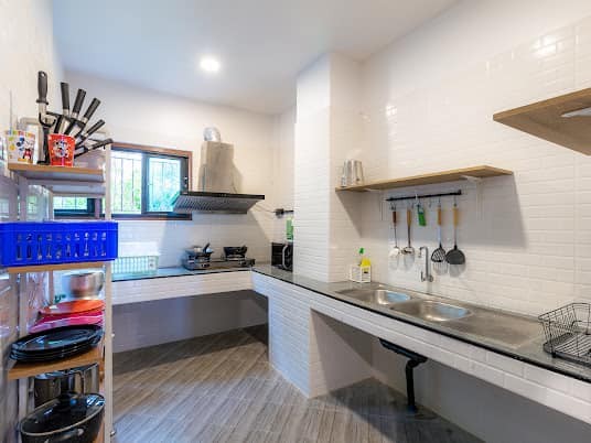 อุปกรณ์ทำอาหาร เตาปิ้งย่าง แอร์ทุกห้อง ผ้าขนหนูและน้ำดื่มตามจำนวนผู้เข้าพัก